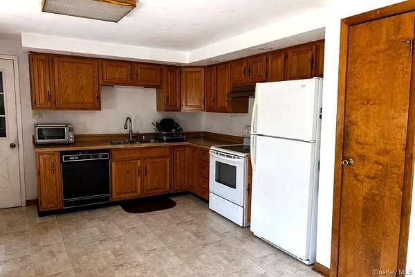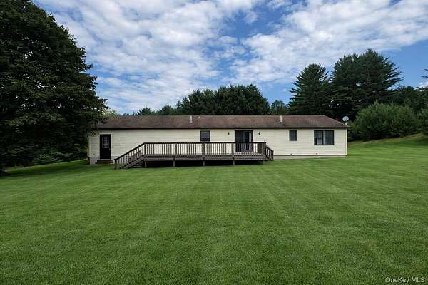 Escape to your own private country retreat! Tucked away on a quiet cul-de-sac, this spacious 3-bedroom, 2-bath ranch sits on two picturesque acres and offers the perfect blend of privacy, comfort, and convenience. Step outside from the dining room onto the expansive rear deck that spans the entire back of the home and overlooks the peaceful property-perfect for morning coffee, entertaining, or simply relaxing while enjoying the scenic surroundings. With plenty of open space, the property provides endless opportunities for outdoor enjoyment, safe play, gardening, or simply soaking in the tranquility. Additional highlights include a large two-car garage with a generous storage loft, a convenient laundry room located just inside the home thru garage or kitchen, a spacious unfinished basement ready for future expansion, and underground utilities that preserve the unobstructed panoramic views of the beautiful landscape. Located in the heart of Sullivan County and close to the natural beauty of the Catskill Mountains, you can enjoy the many pleasures of the region including camping, scenic hiking trails, canoeing, skiing, water parks, maple trail events, local festivals, and concerts in the park and so much more. Enjoy the serenity of country living while remaining conveniently close to shopping, major highways, hospitals, and golf courses-all within approximately two hours of New York City. Whether you're looking for a full-time residence or the perfect weekend escape, this property offers the best of both worlds.