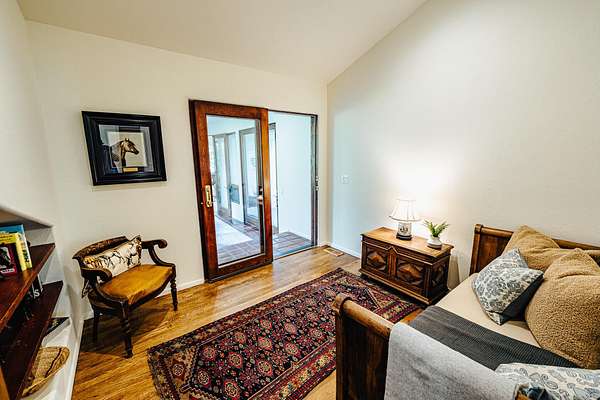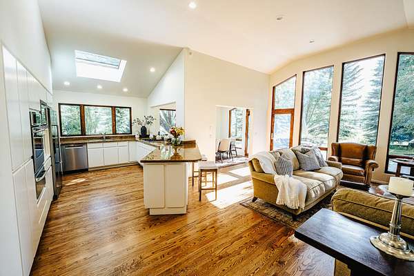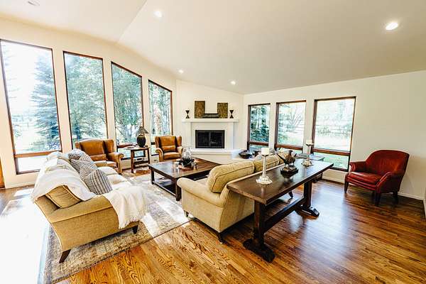 Set on 4 acres between Golden Eagle & Greenhorn subdivisions, this unique and private property offers a rare blend of serenity and convenience-just minutes from both Ketchum & Hailey. This beautiful, single-level, 3-bedroom home includes a den plus a large office, with light-filled living spaces that open to views up the canyon + professionally designed gardens. Recently remodeled with a new roof (synthetic shake!), new furnace, updated bathrooms, fresh paint, and more, the home is move-in ready. Enjoy outdoor living with a generous patio shaded by mature trees, plus a loafing shed and corral for horses. Water rights included! Located in a quiet, small neighborhood with direct access to hiking and biking trails and the bike path, this ranch-style property offers an ideal blend of rural charm and modern livability.