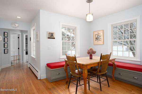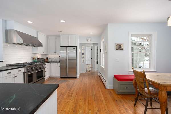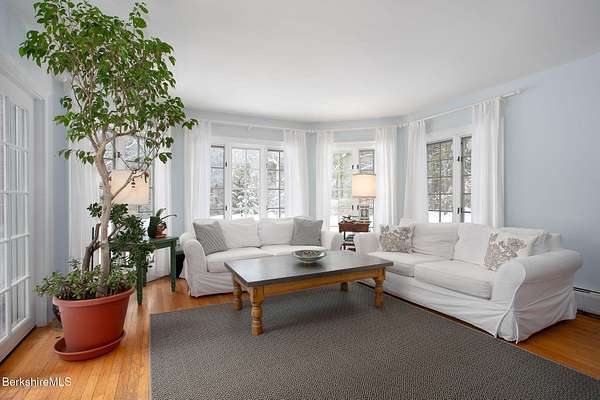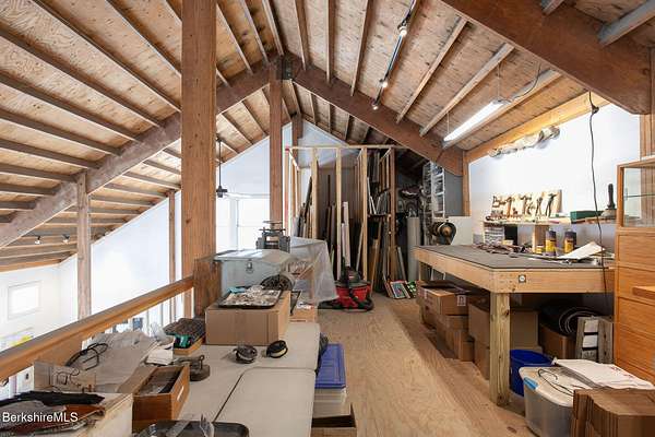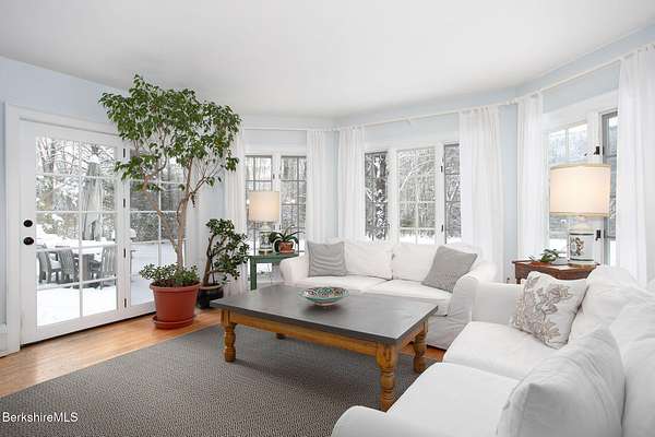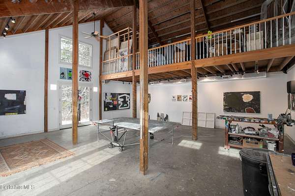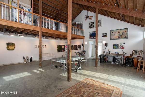 A rare Berkshire offering w/ space, privacy, & exceptional versatility. Fabulous home & separate studio minutes from Tanglewood & Stockbridge Bowl. Charming 3 BR, 2.5 BA, 2,952 sq ft home - complemented by a beautifully renovated 1,800 sq ft studio barn w/ loft & full BA - rests on 8 picturesque acres with beautiful western views. Perfect for outdoor enthusiasts, culture lovers, or anyone seeking a peaceful Berkshire retreat. This location offers easy access to hiking, yoga & wellness centers, boating, skiing, & excellent dining & shopping. Inside, bright & inviting spaces include a living room w/ cathedral ceiling, fireplace, & abundant natural light. A renovated kitchen opens to a cozy den & breakfast nook, pantry, laundry, mudroom & garage. The second-floor primary suite features a vaulted ceiling, private balcony, & stunning mountain views. Lower level offers flexible bonus space ideal for family room, gym, office, or additional storage. Attached two-car garage & outdoor hot tub completes the main residence. The beautifully renovated 30' x 40' studio barn features radiant heated floors, a full bath, second-floor room, & large balcony - ideal as an art studio, workshop, office, or potential conversion to living space. Lovely grounds showcase expansive lawns, Goshen stone patios, & distant pastoral views. The property also has a strong seasonal rental history from June through September.