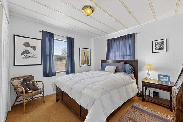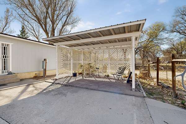 The property has undergone a total, high-quality, remodel, including: Gourmet Kitchen & Designer Bathrooms: Complete tear-out and redesign featuring custom cabinetry, new plumbing, and brand-new, energy-efficient appliances. Refined Interior Finishes: New durable flooring throughout and unique plank ceilings for a rustic sophisticated look. Brand New Mechanical Systems: Installation of a high-efficiency heat pump/AC unit, a significant electrical system upgrade, and a fully renewed private well system (new pump and tank) for reliable water. Outdoor amenities are designed for privacy and utility, featuring: A fully fenced, usable parcel for a secure retreat. Attractive xeriscaping, an inviting sitting area, and a convenient three-bay carport. A large back porch ideal for entertaining/relaxation and mature landscaping. Ample space and a renewed well system perfectly suited for self-sufficiency, including expansive gardening, fruit trees, or small farm animals. Valuable outbuildings for storage, a dedicated workshop, or creative space. The home boasts a prime commuter location, offering quick, easy access to major Northern New Mexico hubs like Santa Fe, Los Alamos, and Espanola. It is presented as a rare opportunity combining luxury upgrades, practical rural utility, and a convenient commute.