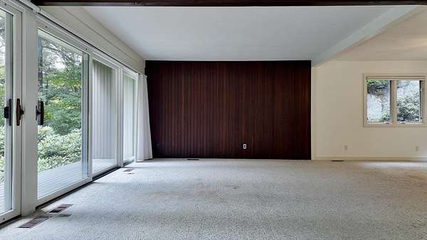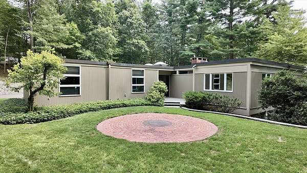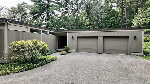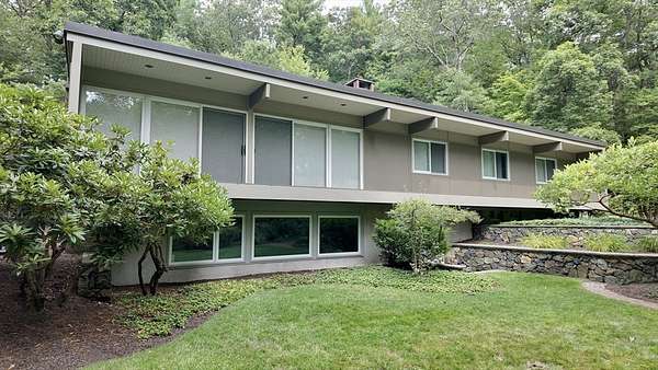 Rare rental opportunity in Weston! This beautifully maintained mid-century modern home sits in a serene, private setting abutting Cat Rock Park. Custom-built for the original owners and thoughtfully preserved, the home offers a smart split layout: one wing features open living/dining areas with stone fireplace and walls of glass; the other houses the bedrooms and baths. Designed for year-round comfort, the home includes deep overhangs for passive solar benefits. The lower level adds a family room with fireplace, a rec/TV space, and a spacious workshop. Central AC and updated systems throughout. A two-car garage is connected via a covered breezeway with skylights. Professionally landscaped yard offers privacy and natural drainage. Available now for lease-don't miss this unique combination of architecture, light, and location.