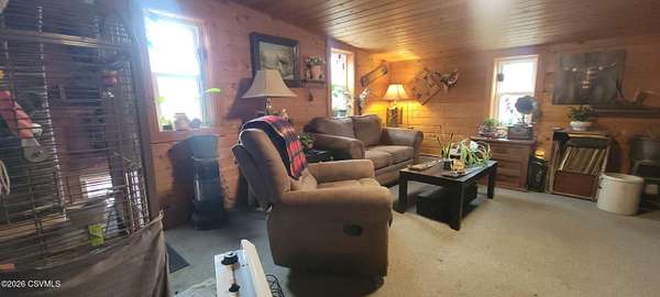 Are you looking to start your own business or need more than a 1 or 2 bay garage, complete with offices, a large storage area and a 1 bed, 1 bath residence so that you can live there as well and work on your business or hobby ? The garage still has anchors in the floor for a frame machine, the third garage bay is seperated by a wall and could be turned into a paint booth. The garage has its own bathroom and a ''break area'' complete with a stove and a refrigerator so you dont have to get your main living area dirty from the shop. This is located through a door in the third garage bay. Extra sheds on property along with a green house, the carport is negotiable depending on offer. To schedule your private showing of this property call or text John at 570-594-0614