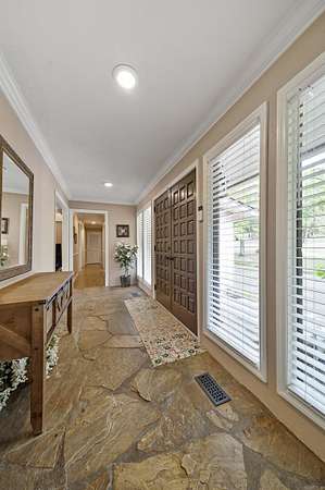 Beautifully updated 1976 home situated on 2 private acres, blending timeless charm with modern upgrades. This 4 bedroom 3 bath home features refinished original hardwood floors, a new roof (2025) and energy-efficient geothermal HVAC. The natural stone foyer leads to a sunken living room with a wall of windows overlooking the peaceful property. Warm, traditional kitchen layout maintains the home's character, while all bathrooms have been updated with granite countertops and new cabinetry. The fully finished basement offers additional living space, including a bedroom, full bath, office, second living area, kitchenette, and French doors leading to the back patio, ideal for guests or multi generational living. Agents please see remarks.