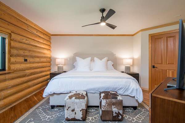 - Ceiling Fan, Fireplace Gas, High Ceilings, Jetted Tub, LED Lights, Main Floor Primary Bedroom, Progrmabl Thermostat, Shop Space, Skylights, Walk-In Closet, Whole House Fans, Window Coverings, Wood Flooring
