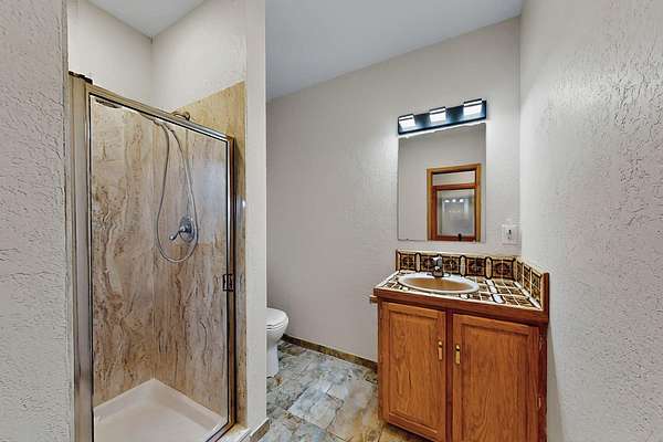- Beamed Ceilings, Entrance Foyer, Main Level Primary, Tub Shower