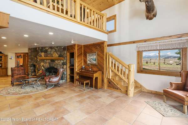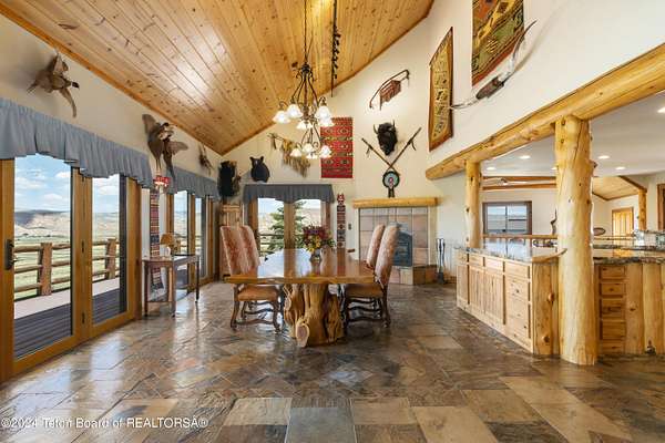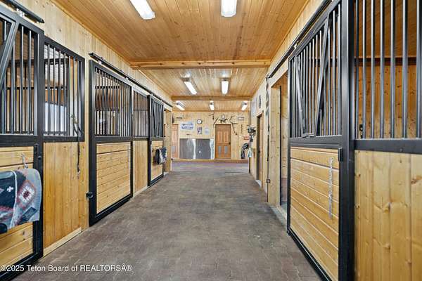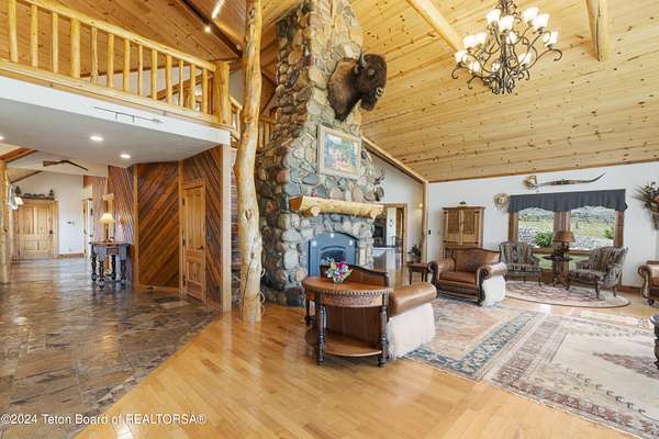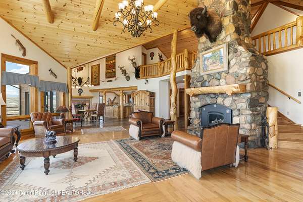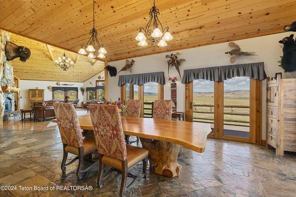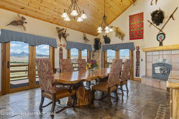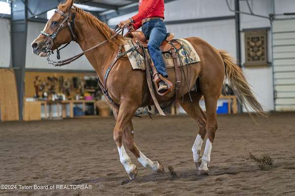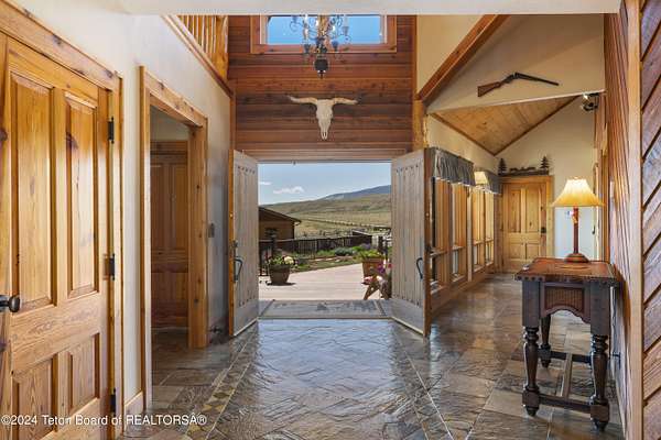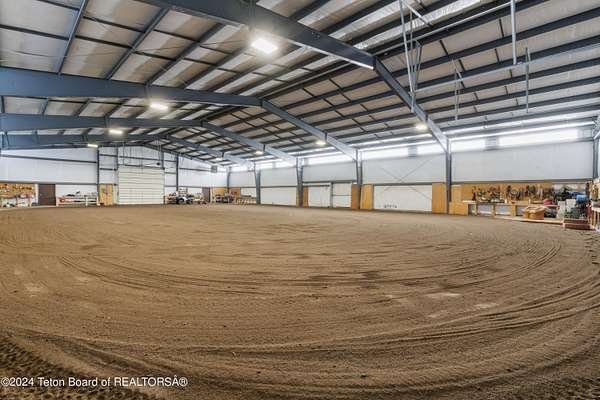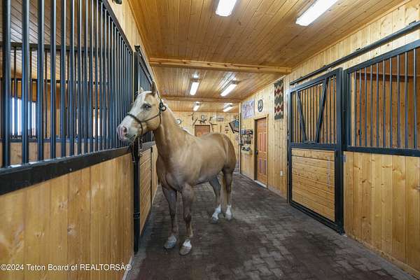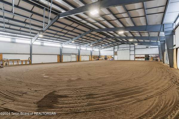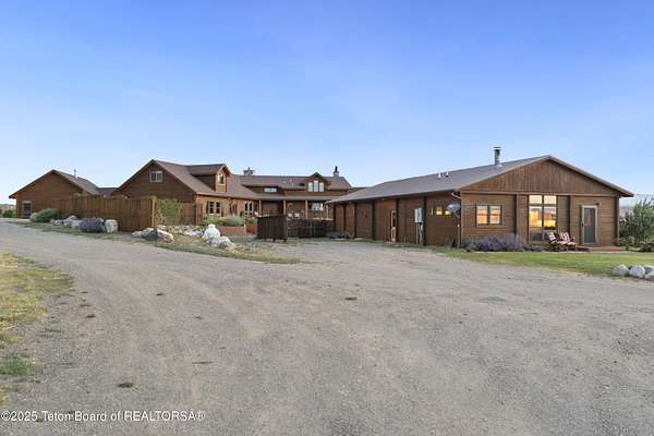 In the Valley of the Warm Winds, above the town of Dubois sits Windbreak Ranch, a well-designed equestrian facility. The main homestead, 11,500 sqft with a panoramic view of the Absaroka and Wind River mountains, sits on 72 acres. Adjacent to the main house is the 3 stall, climate controlled, finished southwest style horse barn with tack and feed rooms and attached 860 sqft guest quarters. The centerpiece of the equestrian operation is a 13,640 sqft building, with 9500 sqft, climate controlled indoor riding arena. A 3,520 sqft workshop and 2,856 sqft barn support the operations. Both the house and barn feature whole home Generac backup generators. Accessed by its own private road, this property features private horse access to public lands and national forest. Whether used as a guest ranch, corporate retreat or family estate, the possibilities are numerous. This property is a full immersion in the soul of Wyoming. This home is being sold separately or as part of the 257 acre Windbreak Ranch, MLS# 24-1957.