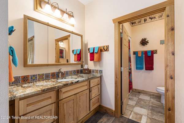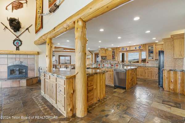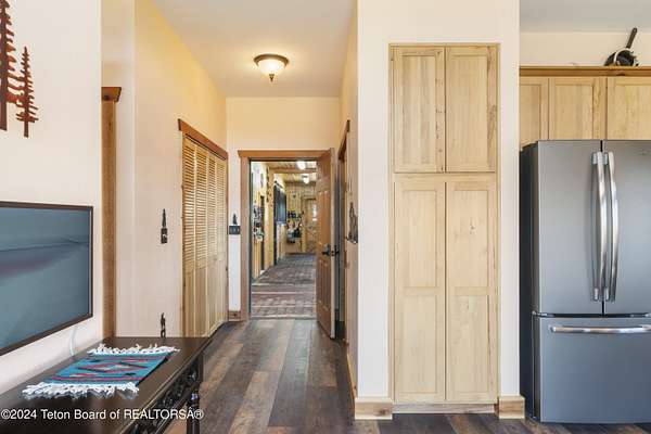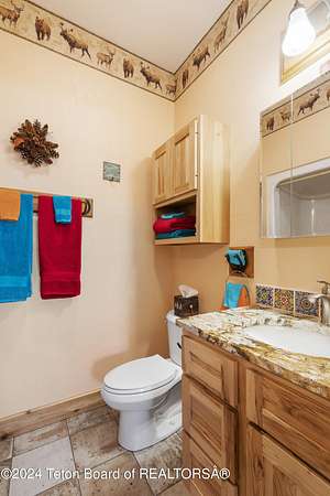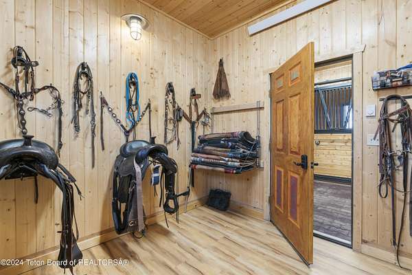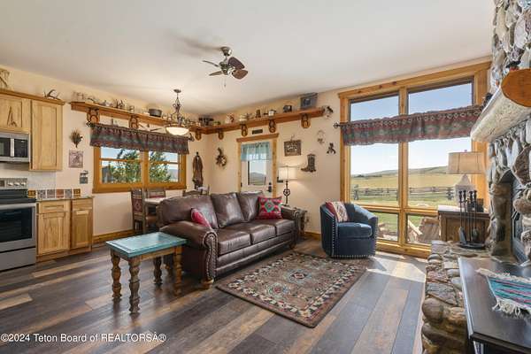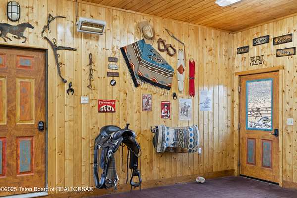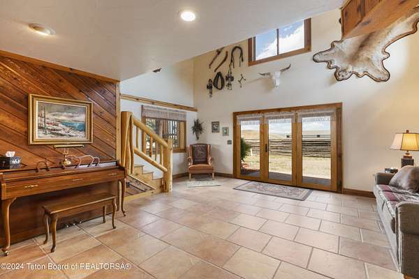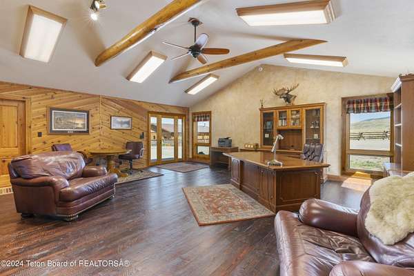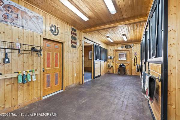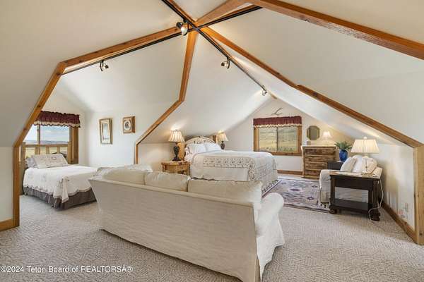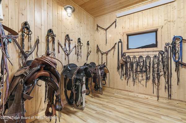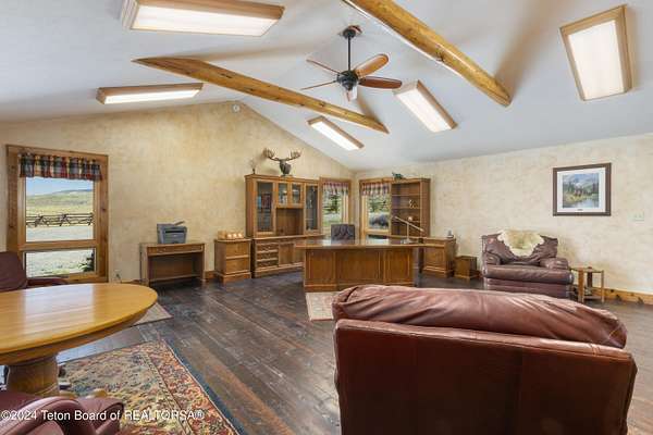In the Valley of the Warm Winds, above the town of Dubois sits Windbreak Ranch, a well-designed equestrian facility. The main homestead, 11,500 sqft with a panoramic view of the Absaroka and Wind River mountains, sits on 72 acres. Adjacent to the main house is the 3 stall, climate controlled, finished southwest style horse barn with tack and feed rooms and attached 860 sqft guest quarters. The centerpiece of the equestrian operation is a 13,640 sqft building, with 9500 sqft, climate controlled indoor riding arena. A 3,520 sqft workshop and 2,856 sqft barn support the operations. Both the house and barn feature whole home Generac backup generators. Accessed by its own private road, this property features private horse access to public lands and national forest. Whether used as a guest ranch, corporate retreat or family estate, the possibilities are numerous. This property is a full immersion in the soul of Wyoming. This home is being sold separately or as part of the 257 acre Windbreak Ranch, MLS# 24-1957.