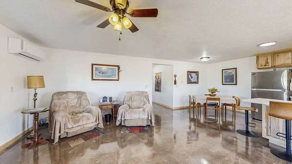 Live on a Residential Airpark with your plane! Aviation activities daily. Enjoy the benefits of Aviators as neighbors! 4700 Sq Ft of Heated space including Hangar with radiant in-floor heat. Hangar is completely finished like a large living area! Great for entertaining, home projects of any kind. Second floor is one large room with a full bath and a outside deck for those summer evenings! There is a kitchen plumbed in one corner for future Guest or Air B and B rental. Situated on 2.5 acres, Adjoining acreage available if desired. 26 acres adjoining! Great for Horses or raise some beef! Close to most all needs, Walmart, Raks Lumber, Harbor freight, Walgreens, auto supply and more all within 5 miles radius. Close to Sandia Mountains for Hiking, skiing, biking, 25 Miles to Albuquerque, 45 miles to Santa Fe.