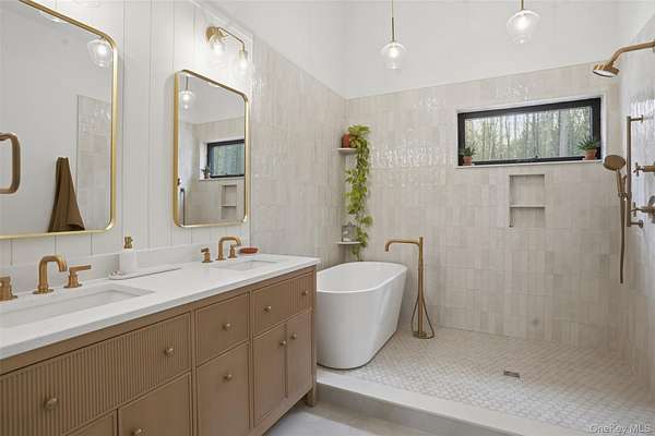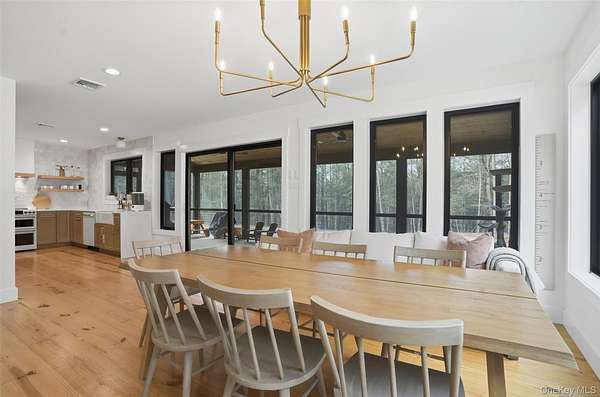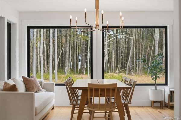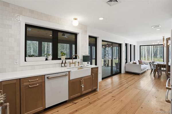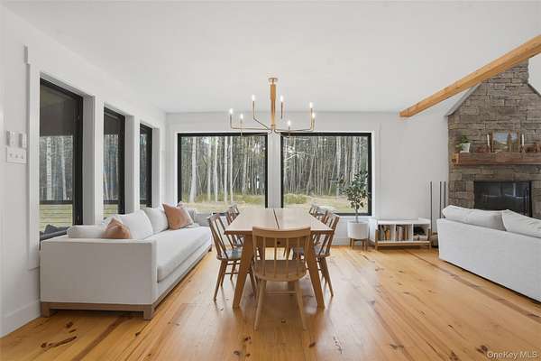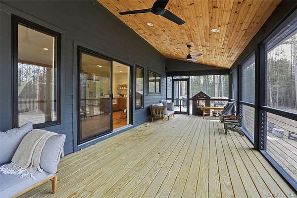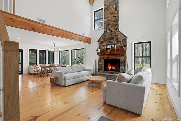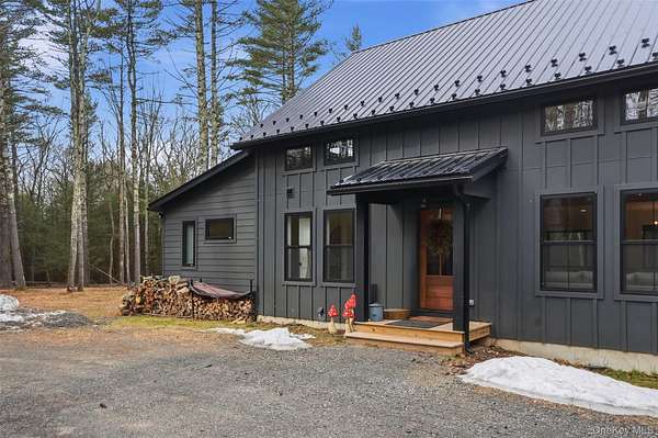 Built in 2023 and set on over seven private acres, this stunning contemporary home delivers modern design, open space, and true Hudson Valley serenity. Soaring ceilings and a thoughtfully designed open floor plan fill the home with natural light, creating an atmosphere that is equally suited for peaceful everyday living and effortless entertaining. The sleek, modern kitchen flows seamlessly into the living and dining areas, anchored by a wood-burning fireplace that brings warmth and character to the heart of the home. Five spacious bedrooms and three and a half beautifully appointed bathrooms, including a first-floor primary suite that provides both privacy and convenience. Step outside to a screened-in porch and expansive deck, perfect for outdoor dining, or head down to the fully finished walkout basement - ready for a home gym, media room, guest suite, or additional living space tailored to your needs. Just 15 minutes from the craft breweries and Inness in Accord, and a short drive to Stone Ridge, this is the rare property that gives you total privacy without sacrificing access to the best the Hudson Valley has to offer - all within a new, turnkey home.