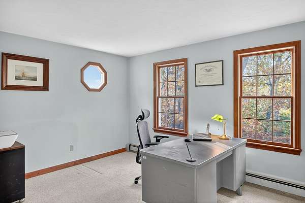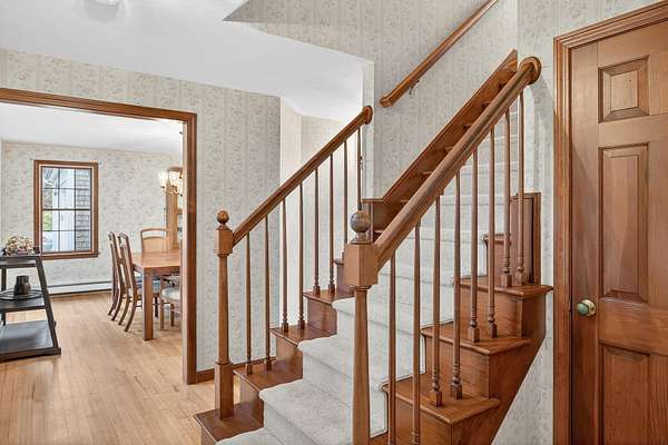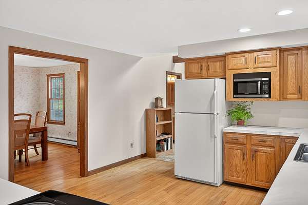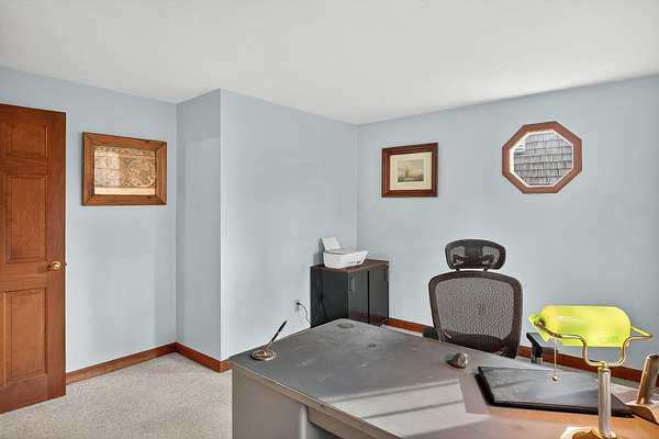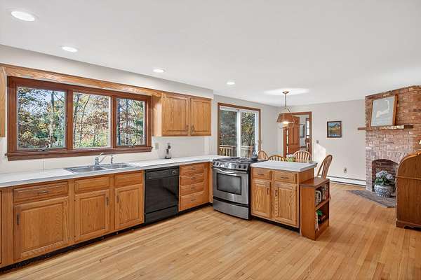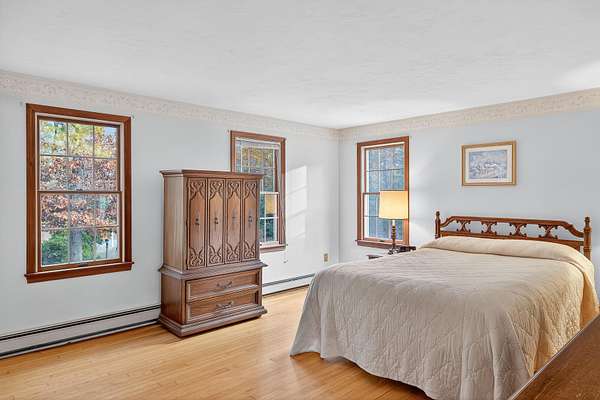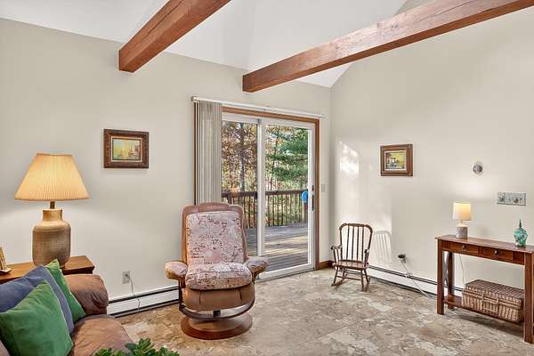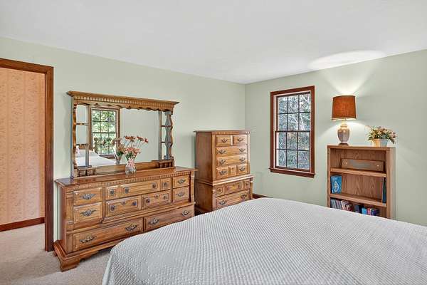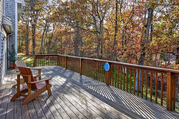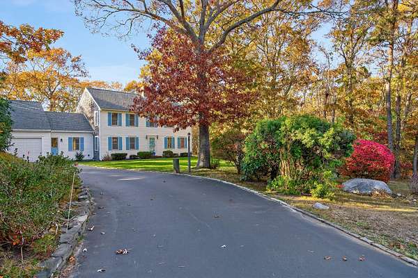 Welcome to 14 Village Drive, an elegant Colonial residence nestled in the highly sought-after Village at Old County Road neighborhood. Lovingly maintained by its original owners, this stately home is perfectly sited on 1.6 acres of privacy, one of the largest lots in the community. Step inside to a beautifully flowing floor plan designed for both comfort and entertaining. The inviting family room features a glass slider that opens to an expansive deck overlooking the serene grounds. The open-concept kitchen offers generous workspace, a casual dining area, and a cozy hearth, creating the perfect gathering place. A sunlit formal dining room is ideal for hosting holidays and special occasions, while the front to back living room showcases a second fireplace and exceptional space for relaxation or entertaining. Gleaming hardwood flooring extends throughout the main level, adding timeless elegance to every room. Upstairs, the primary suite offers hardwood floors, double closets, and a private en suite bath. Three additional we bedrooms and a full bathroom provide ample space for family or guests. The walkout lower level offers excellent potential for future finishing, whether as a recreation area, fitness space, or media room. The two-car garage includes a full staircase leading to a loft perfect for storage or a potential home office. Ideally located with close proximity to the North Side beaches and easy highway access for a convenient commute, 14 Village Drive combines classic New England charm with modern comfort in one of Sandwich's most desirable neighborhoods.