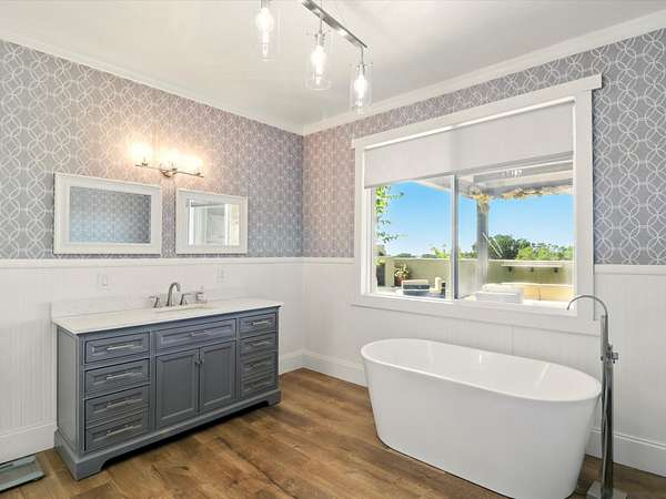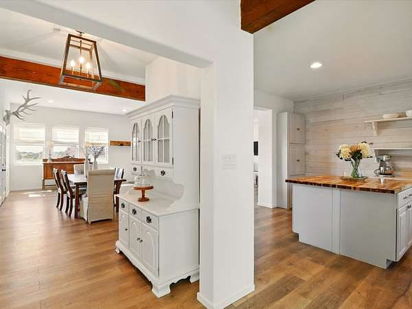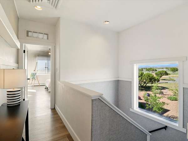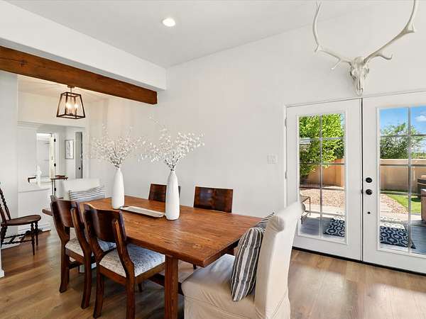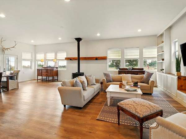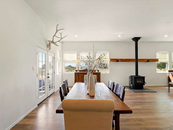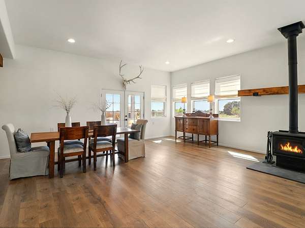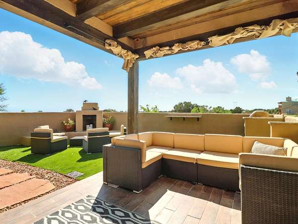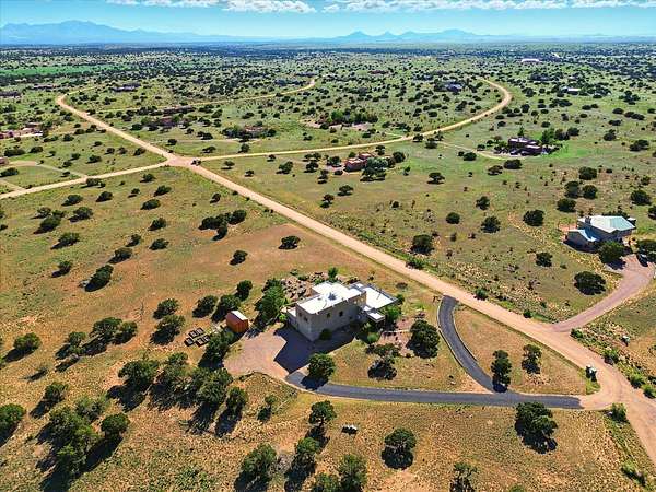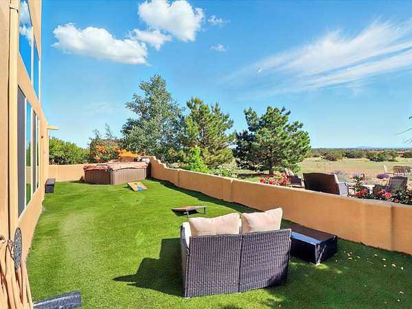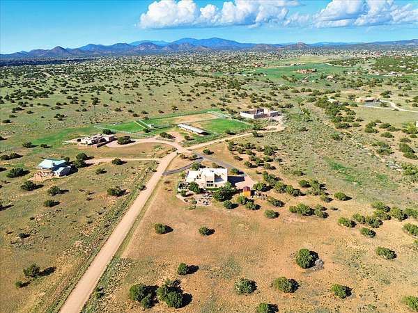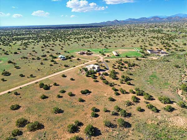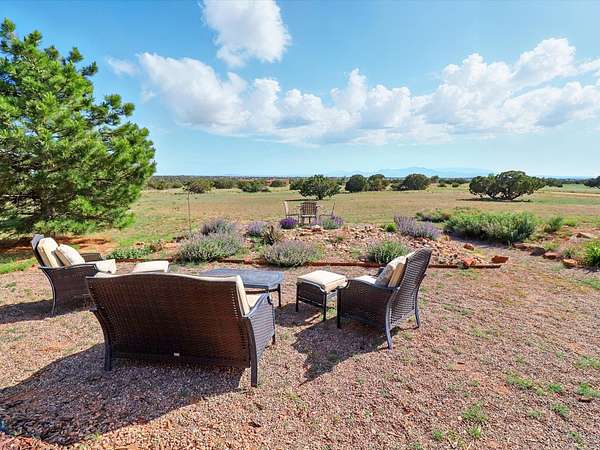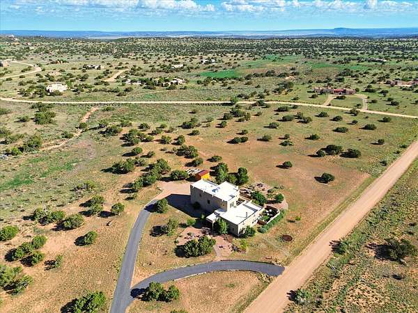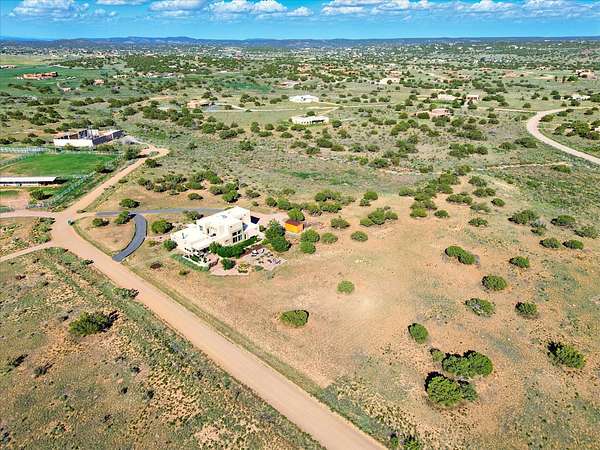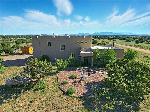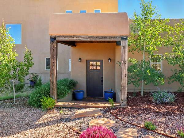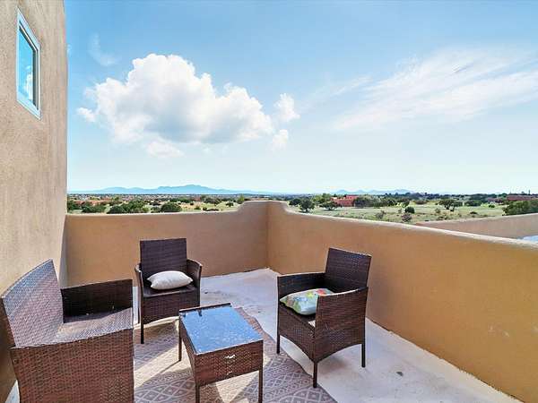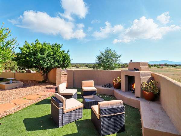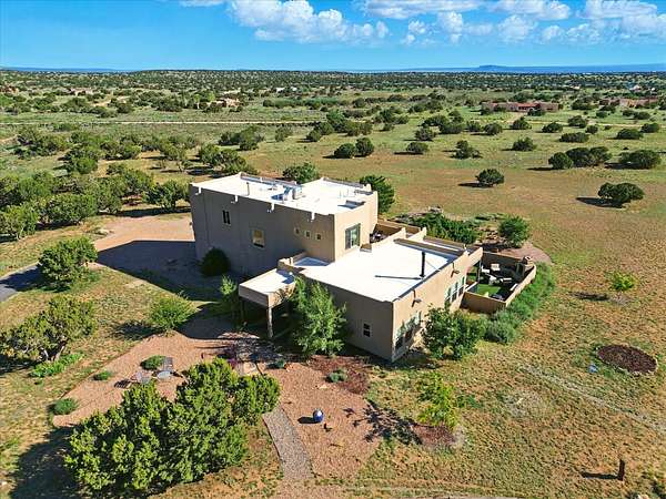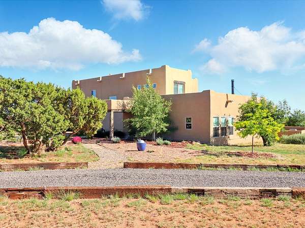 Experience breathtaking views surrounding this exceptional property located on just over 4 acres of pristine high desert landscape. This stunning home blends the timeless charm of Pueblo-style architecture with the inviting touches of modern farmhouse design including an expansive 1,000 square foot addition completed in 2020. The versatile floor plan is anchored by a beautifully updated gourmet kitchen featuring a Sub-Zero refrigerator and custom finishes with ample workspace, and a seamless flow for entertaining. On the main floor you will find that the primary bedroom showcases soaring ceilings with a picturesque view and private access to the outdoor courtyard. Complete with an oversized closet area and beautifully renovated bathroom that is perfect for soaking in the bathtub while taking in the view from the large picture window right above. The second floor consists of two bedrooms, a bonus room and two bathrooms. The balcony off the ensuite bedroom is ideal for soaking in the mountains and serene sunsets. Step outside to enjoy the covered portal and cozy up by the outdoor wood-burning fireplace. Fruit trees dot the landscape, adding character and a touch of sweetness to your retreat. Backed by peaceful green space and only minutes from the Galisteo Basin preserve, Santa Fe Rail Trail, this property offers the perfect blend of tranquility, access to nature and refined living. Do not miss this rare opportunity to own a home that truly captures the spirit and beauty of New Mexico. Pre-listing inspection report is available.