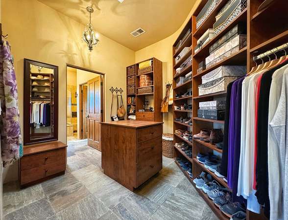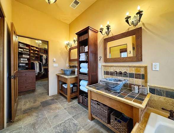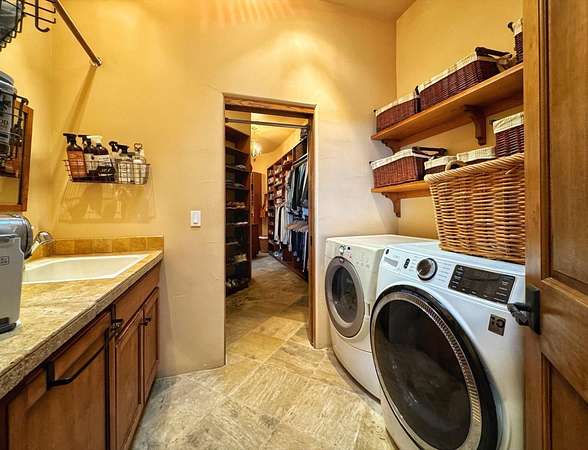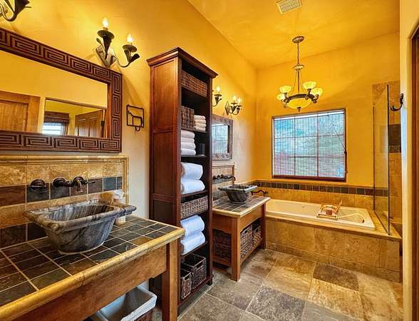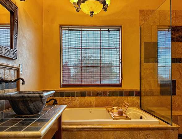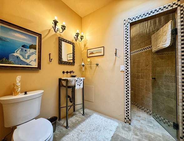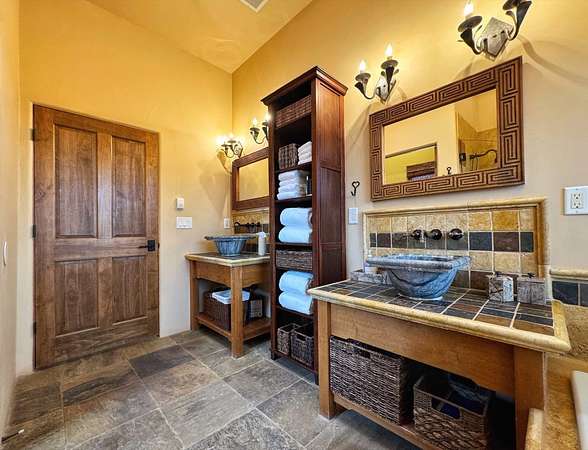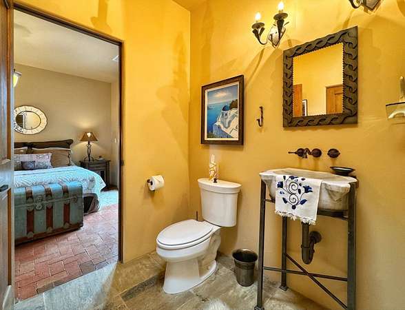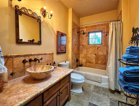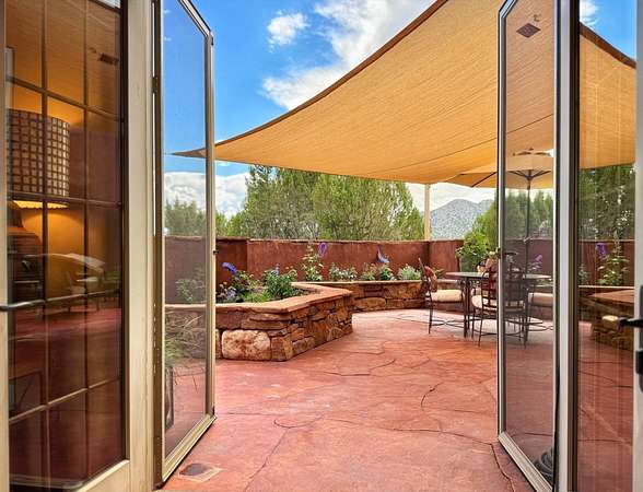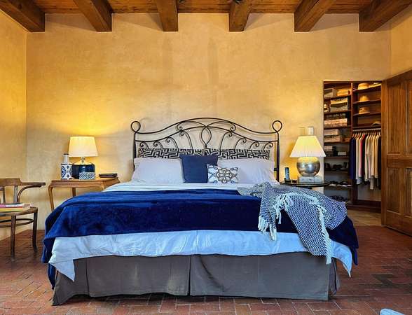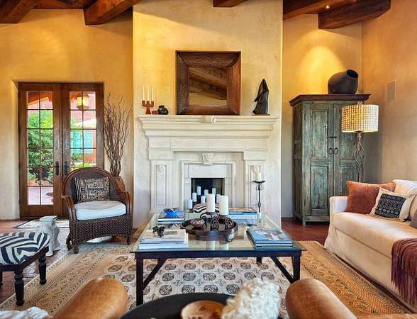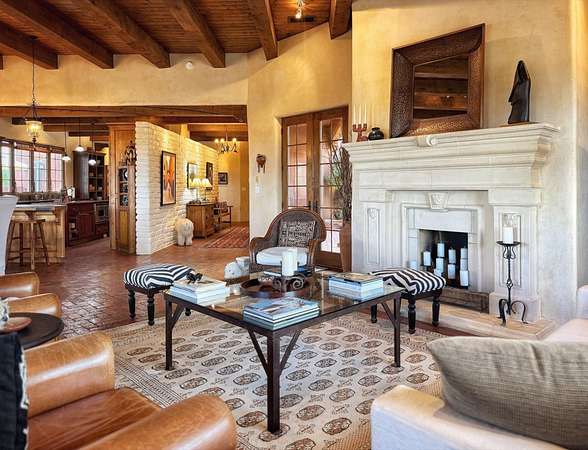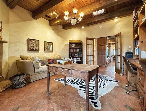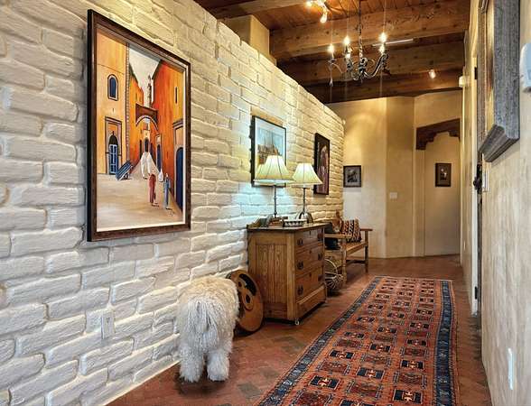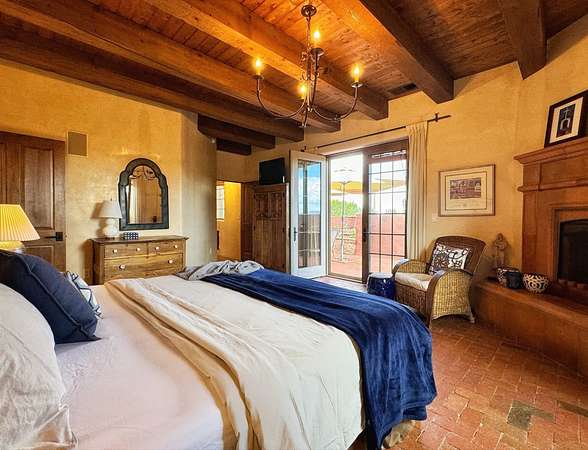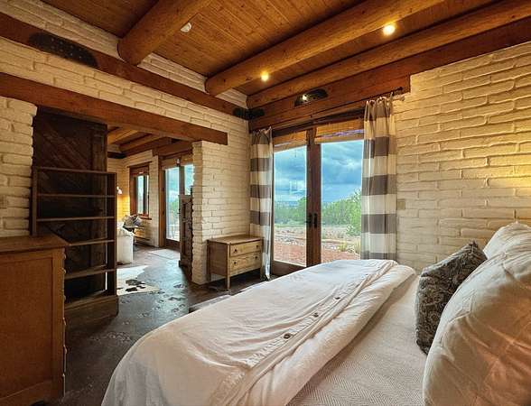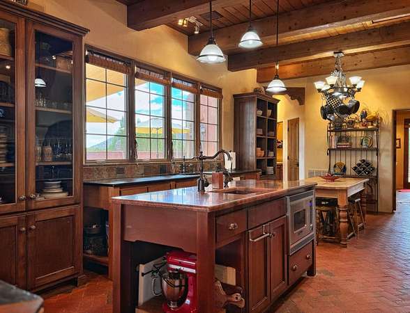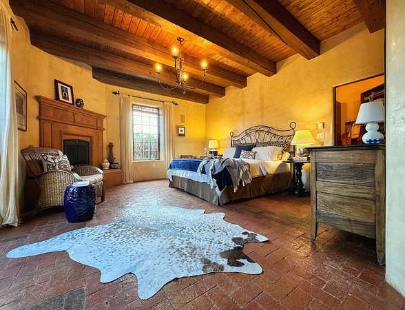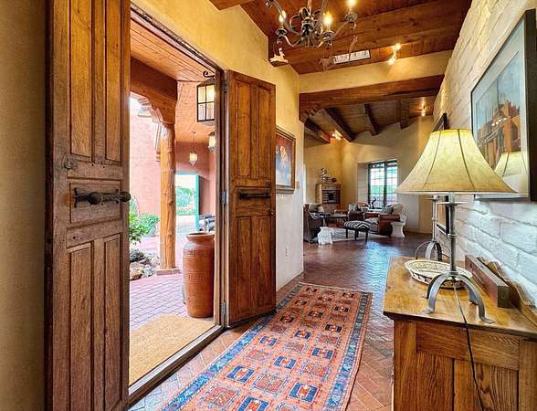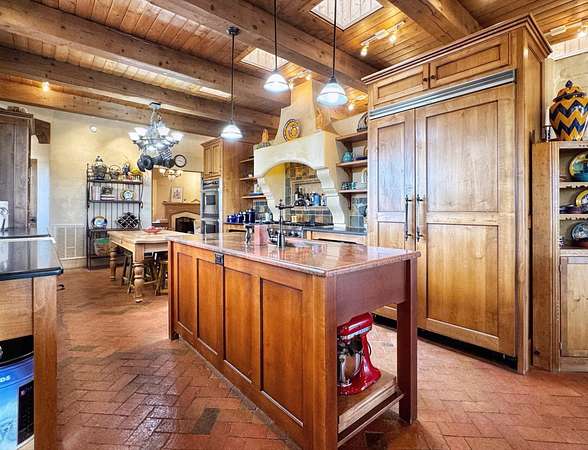 Luxurious single-level custom-built home in Silver Hills Ranch, just 20 mins from Santa Fe & 50 mins from Albuquerque International Sunport. Set on 14.37 acres adjacent to BLM and county open space, the property offers ample room to build equestrian facilities and accommodates up to 7 horses. The 3,360 sq ft main home-recently re-stuccoed-is paired with an 820 sq ft adobe casita-both enjoying 360 degrees panoramic views of the Galisteo Basin, Cerrillos Hills, Sangre de Cristo, Sandia & Ortiz Mountains. The main home features 3 bedrooms, office/library, & 3 bathrooms (2 full, 1- 3/4), and welcomes you through a spacious courtyard with antique mesquite doors. Inside, the foyer features an exposed brick accent wall that adds character and warmth. The great room boasts soaring ceilings with wood beams & tongue-and-groove planks. A chef's kitchen offers Viking Pro appliances, alder cabinetry, honed granite & slate countertops, dual islands, custom hood, & two sinks (granite farm & copper). The primary suite includes a spacious walk-in closet and a luxurious full bathroom with dual marble sinks. Additional features include a library/flex room, media room, & 3 wood-burning fireplaces w/gas starters. Elegant finishes include herringbone brick & fossilized stone floors, hand-troweled plaster walls & Pella Architect Series windows. Seven sets of elegant 8-foot Pella French doors open effortlessly to five serene patios and courtyards, providing expansive outdoor living spaces perfect for entertaining, relaxing, and enjoying breathtaking panoramic views. Modern comforts: central A/C, in-floor radiant & forced-air heating, built-in fridge & whole-home stereo. Eco-friendly features include 24 solar panels, 500-gal propane tank, & 3 rainwater-harvesting cisterns. The casita offers stylish modern finishes & a 3/4 bath-ideal for guests. Located in a desirable neighborhood w/low HOA fees & sensible CC&Rs. A rare blend of luxury, functionality & sustainability in an unmatched natural setting.
