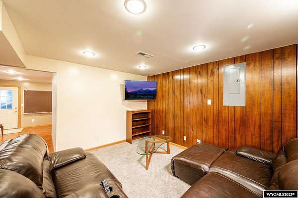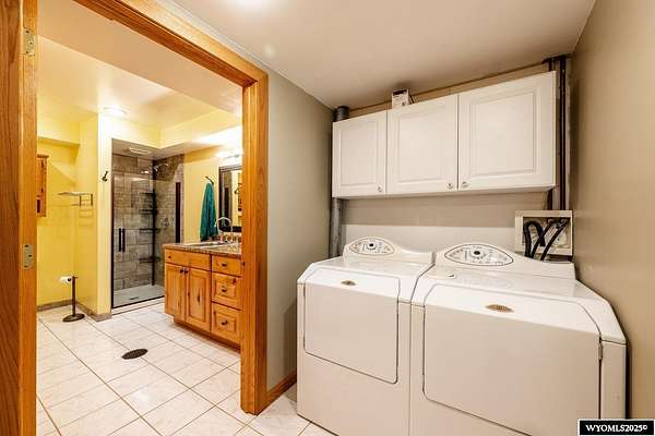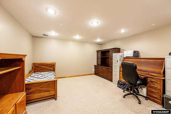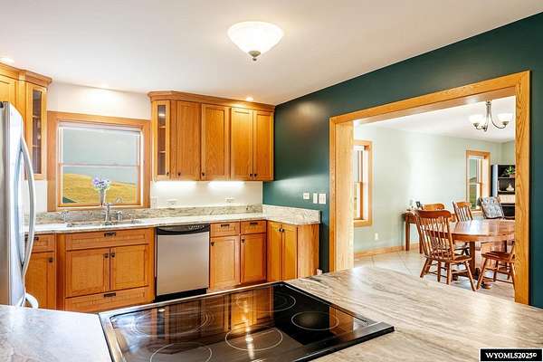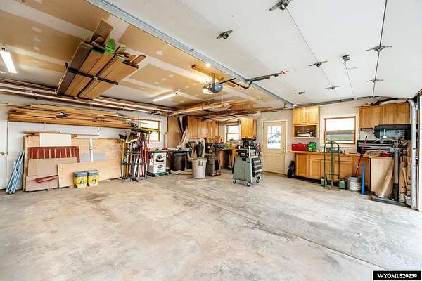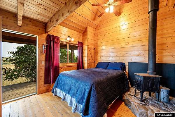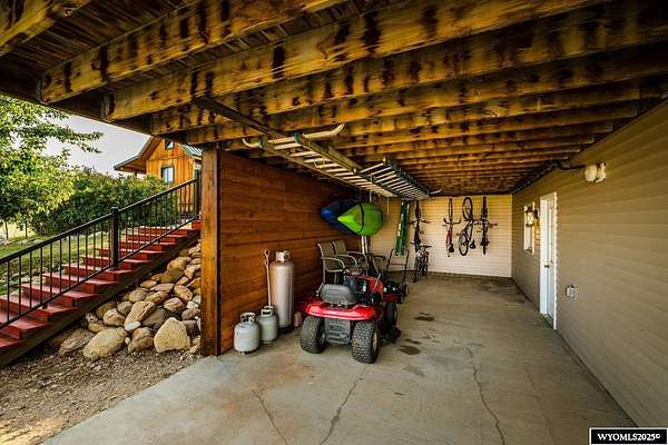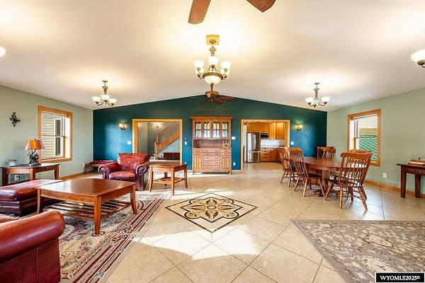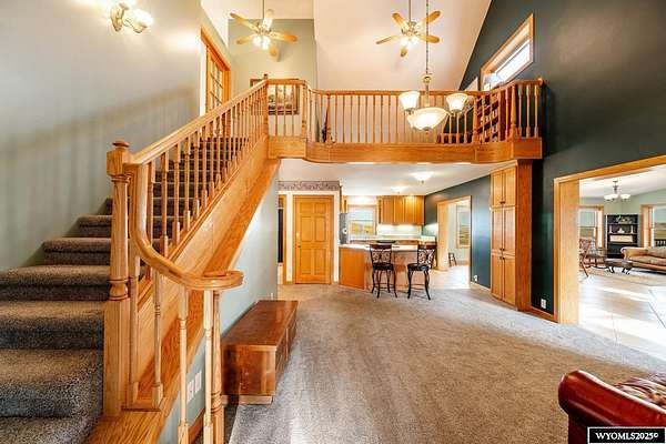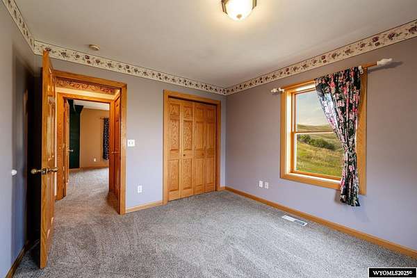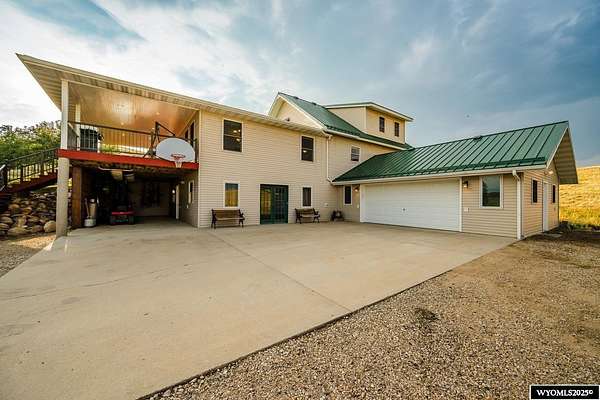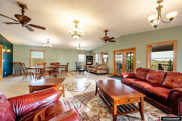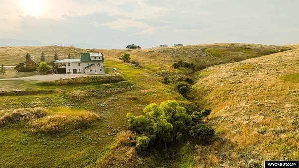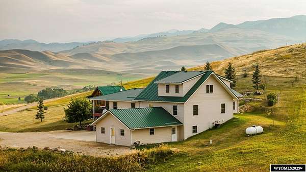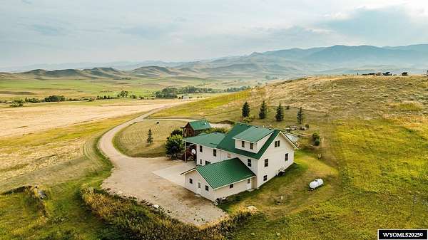 Experience peaceful country living on this 7.4 acre property featuring a comfortable 5 bedroom, 3 bath home with attached 2 car garage. The acreage includes 3 parcels. Enjoy tranquil privacy, open space, abundant wildlife, & beautiful views of the Piney Creek Valley & the Big Horn Mountains. Settled on the historically rich Sullivant Hill, this property enjoys mature apple trees, lilacs, and abundant lilies. The custom built home has plenty of space and natural light throughout. Pella windows are wood int/clad ext. Floors are bamboo/hardwood, ceramic tile, and carpeting. Ext walls are all cement poured making this a very quiet, stable and energy efficient structure. The roof is standing seam metal roofing that was replaced in 2012. The house has 2 furnaces. The main forced air high efficiency furnace was replaced in 2024. Air conditioning unit and heat pump provide comfort for any weather conditions. Upper floor includes the master bedroom/bath & dressing area & loft with high vaulted ceilings overlooking a sitting room below. Stair railing/banister are oak. The main floor includes 2 spacious bedrooms, a linen closet, coat closet, fully tiled bathroom, sitting area, & a large kitchen with custom cabinets and stone countertops with eating area. The large pass throughs allow for easy movement to the elegant dining/living room (24' x 32') which features chandelier lighting & vaulted ceilings. On this floor is a music/sunroom with a gas fireplace w/remote start. Outside there is a large covered porch (14' x 32') & wrap around deck. This is a great place for sitting, grilling, entertaining. The lower level has 2 bedrooms, a TV/ Family room, bathroom , 2 offices , mudroom and locking storage. Area under deck is great for additional storage or carport. Attic storage above garage. Property includes guest cabin perfect for visitors or additional living space.