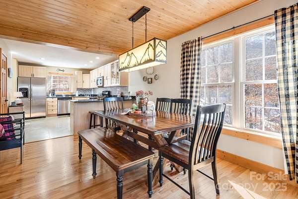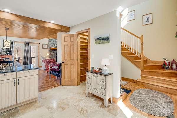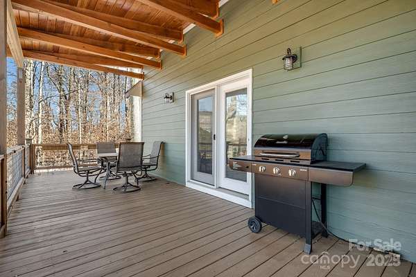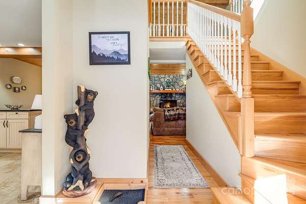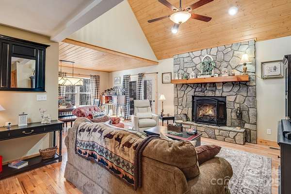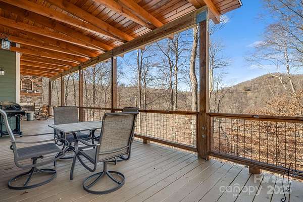 Enjoy a direct view of Big Bald Mountain from this spotless, meticulously maintained home, ideally positioned on a quiet, wooded homesite in Wolf Laurel. 14 Zebulon Lane conveys fully furnished, offering an exceptionally turnkey opportunity, and is in excellent condition throughout, with thoughtful furnishings that complement the home's mountain character and layout. Adding to the sense of privacy, the home sits on a larger 1.84-acre lot with approximately 500 feet of road frontage along Zebulon Lane and Ridgeway Road, providing generous separation from neighboring homes and a true feeling of elbow room. The property enjoys fully paved access from the main community roadways all the way to the home, allowing for easy, year-round access while maintaining a quiet, private setting. A welcoming covered front porch leads into a light-filled main level highlighted by vaulted ceilings, hardwood floors, and classic mountain finishes. The great room is anchored by a striking floor-to-ceiling stone fireplace, creating a warm and inviting space for relaxing or entertaining, while windows and outdoor living areas frame the mountain backdrop. The open-concept layout flows seamlessly into the dining area and well-appointed kitchen, featuring custom cabinetry, granite countertops, stainless appliances, ample storage, and a functional island-ideal for everyday living or hosting guests. The main-level primary suite offers a private retreat with direct deck access, generous closet space, and an ensuite bath with dual vanities, soaking tub, and separate shower. The upper level features two additional bedrooms and a full bathroom, providing comfortable accommodations for family or guests while maintaining separation from the primary suite. The finished lower level adds outstanding versatility with a spacious family and billiard room, game and recreation space, kitchenette/wet bar, a well-sized office-flex room, a full bath, dedicated laundry, and excellent storage. This level opens directly to a covered lower deck and also includes an exterior entry door, offering a convenient secondary access point. Outdoor living is a true highlight. In addition to the lower-level covered deck, a large upper covered rear deck extends the main living space year-round and features a beautiful stone outdoor fireplace-ideal for cool mountain evenings while enjoying views toward Big Bald Mountain. Outdoor enthusiasts will appreciate access to the extensive hiking and biking trail system throughout the resort and surrounding protected lands. The upcoming Hatley Pointe Adventure Bike Park, scheduled to open in 2026, will further enhance the area's appeal for cyclists and adventure seekers. Wolf Laurel offers year-round recreation including skiing at Hatley Pointe, golf at Wolf Laurel Country Club, and programs at the Wolf Laurel Village Club, including tennis and pickleball, a heated seasonal pool, and a stocked trout pond for fishing, all surrounded by thousands of acres of protected wilderness and the nearby Pisgah National Forest. Dining options within the resort include the Smoke & Timber Restaurant at Hatley Pointe, providing a welcoming, year-round gathering place just a short drive from the home. Some community amenities require specific memberships. Whether used as a primary residence or mountain retreat, 14 Zebulon Lane delivers an exceptional combination of condition, furnishings, privacy, recreation, and high-elevation living within one of Western North Carolina's most desirable mountain communities.