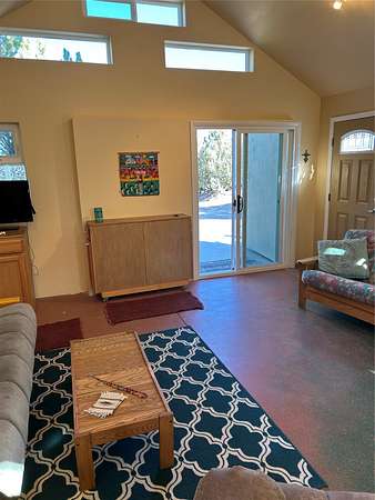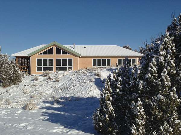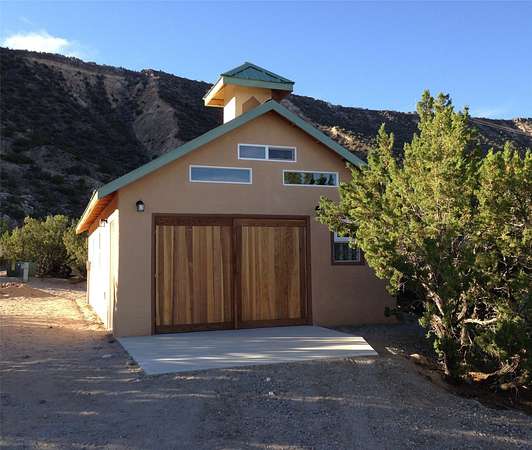 Nestled on 9 serene acres in Northern New Mexico, this lovingly maintained mountain adobe retreat offers privacy, character, and versatility. The main residence is a beautifully crafted 2-bedroom, 2-bath adobe home featuring passive solar Trombe windows with wood casings, stained concrete floors, flagstone countertops, diamond plaster walls, and tongue-and-groove vaulted ceilings. Additional highlights include gated subdivision, tiled showers, a custom built-in desk, a cozy propane gas stove-perfect for cool mountain evenings, and electric baseboard heating. The detached studio, known as the Capilla, provides a flexible space ideal for guests, creative work, or rental use. It includes electric heating, a 3/4 bath, and a compact kitchen. The storage shed has electricity and is ideal for tools, small tractor and storing items from the weather. The property has served both as a peaceful second home and a successful short-term vacation rental home designed for relaxation, serving as a central hub for exploring northern New Mexico year round, including nearby mineral springs, hiking, skiing, cultural venues and festivities, and local art in Ojo Caliente, Abiquiu, Santa Fe and Taos.
