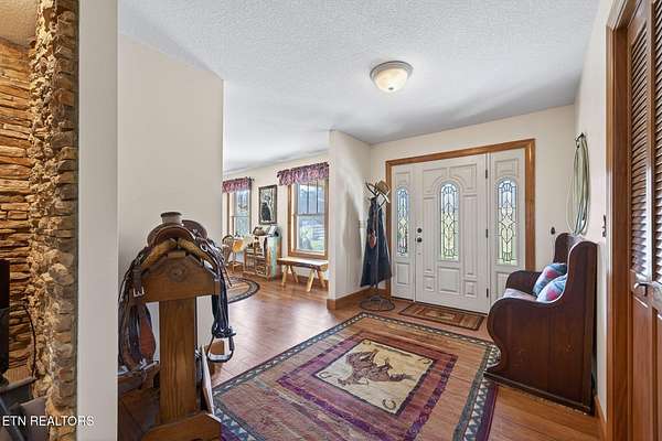 This is a gem, a rare find, you won't see every day! A spacious 20+acre property in a nice neighborhood. It features a 2228 sq ft home with 3 bedrooms, 2 1/2 baths, a large living room with a tray ceiling and fireplace, a spacious kitchen with a bar, formal dining area, laundry room, large screened in porch, and an attached 2 car garage. It also has a half unfinished basement with a walk out door. Located in the heart of horse-riding country, not far from Big South Fork, it even has its own horse-riding rink. The spacious horse barn has cement floors, a tack room, five stalls, an automatic garage door, plumbing, and plenty of lights. This property, located at the end of a cul de sac has everything you would want -- peace, privacy, mountains, fields, creeks, trails, beautiful views, and even a fire pit. Don't miss this one, it's a must see!