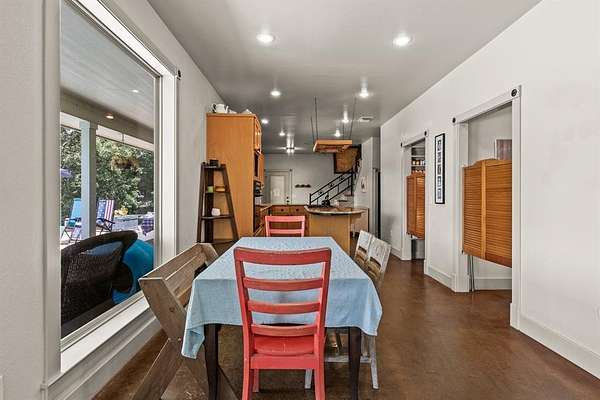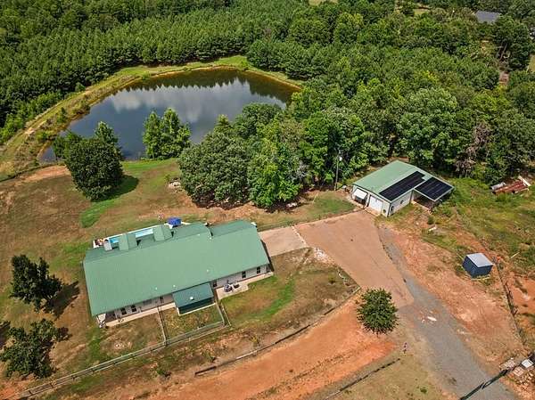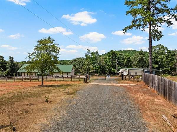 24.46 acres in East Texas offering two homes, excellent improvements, and income potential. The main home is a custom 2 story, 3 bed, 3 bath with 20 foot ceilings and floor to ceiling windows overlooking the property. The living area features an open layout with wood burning stove and connects to the kitchen with granite countertops, gas cooktop island, slate sink, large pantry, and abundant cabinetry. The primary suite includes a jetted tub, oversized shower, dual sinks, and custom closet. A second bedroom is located downstairs, while upstairs features a bunk room and full bath. Additional features include a private office, safe room, and hidden gun room. Outdoor amenities include a 15x30 saltwater pool, a stocked 2 acre pond, 6 acres of planted pines with walking trails, and over 20 fruit trees with irrigation piped to each. Improvements include a 30x50 insulated shop with plumbing, electrical, bathroom, and extended covered patio, plus covered RV parking with hookups. A second barn offers 3 stalls and a tack room.