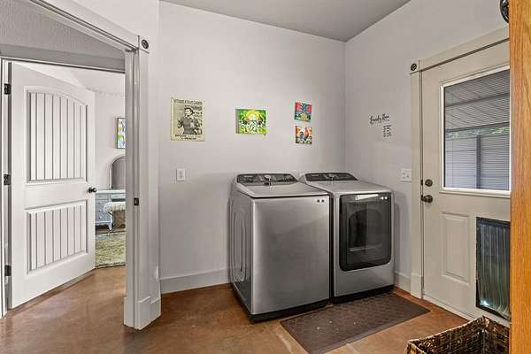 Energy-efficient features include solar panels, Tesla battery backup, whole-house generator, and deep water well, offering the ability to live comfortably off grid.