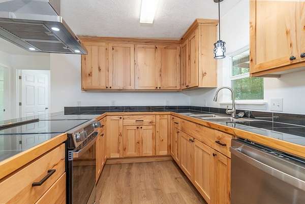 Welcome to your fully renovated retreat near Lake Sam Rayburn! Situated on a spacious 3-acre corner lot, this beautifully updated home offers the perfect blend of comfort, convenience, and room to grow. Located just about a mile from the Hanks Creek Boat Ramp, you'll enjoy easy access to some of the best fishing and recreation in East Texas. Inside, the home has been completely transformed with a brand-new kitchen featuring modern cabinetry, updated appliances, and stylish fixtures throughout. Fresh paint and all-new flooring create a clean, inviting atmosphere. The open acreage provides endless possibilities—whether you're looking to add a workshop, bring animals, or expand your lakeside getaway. With plenty of space and a prime location, this property is ideal as a full-time residence, weekend escape, or investment opportunity.