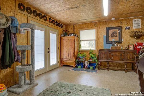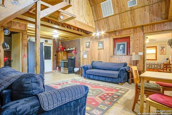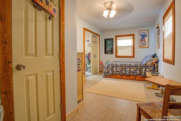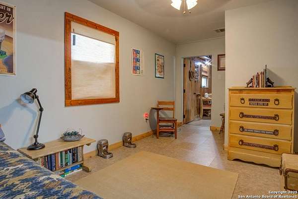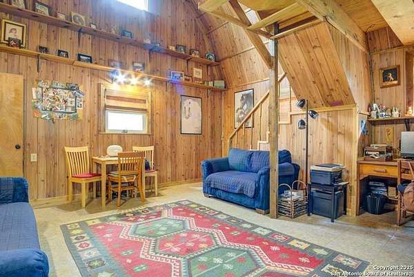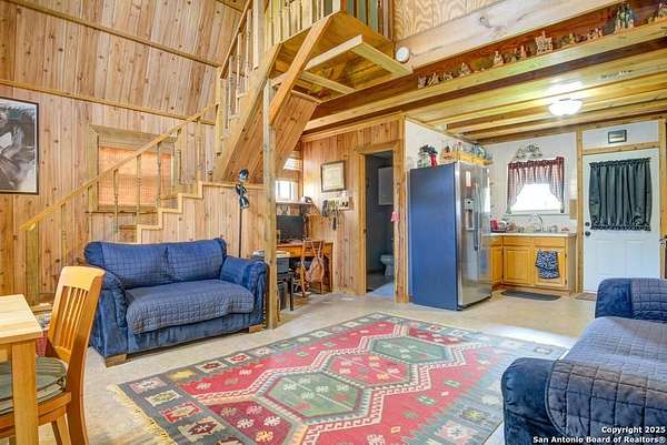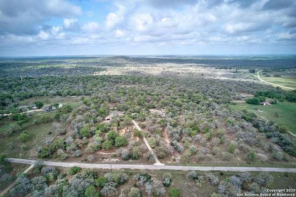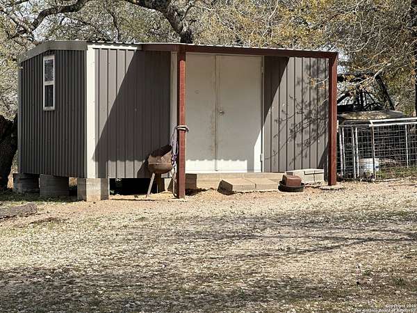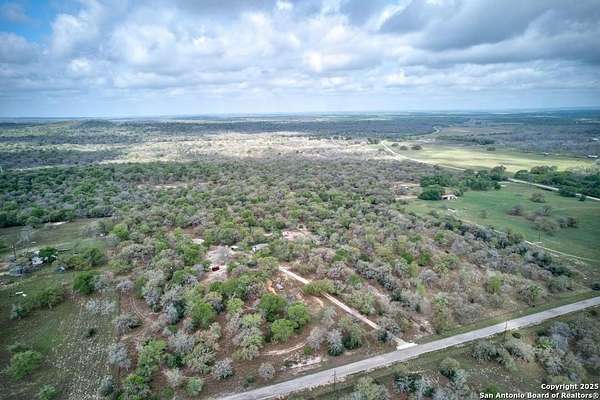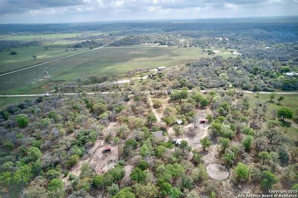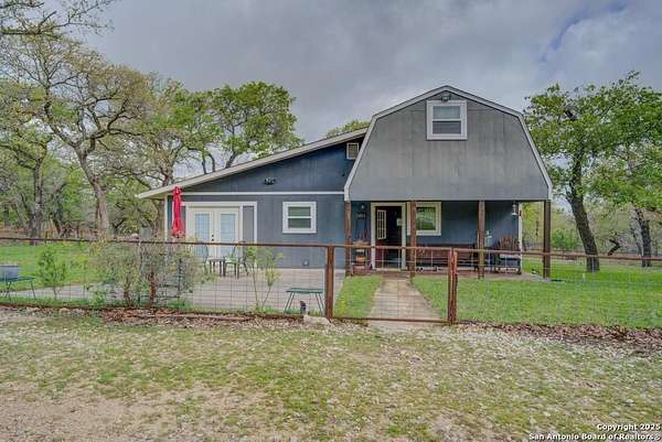 Escape to the quiet beauty of the Texas countryside in Guadalupe Hills Ranch. This 10.05-acre wooded paradise delivers sweeping hill-country views, open skies, and abundant wildlife - the perfect setting for your country dream. The charming cabin-style home offers 1,230 SF, two bedrooms, one bath, and two inviting living spaces. An oversized septic system, along with an additional electric meter, was thoughtfully designed for a future home site or expansion. Recent upgrades include new new well pump 2025,HVAC (2023), 2017 roof, energy-efficient windows, Hardie siding.Special features are horse stall and pen, metal workshop/storage building, and full farm fencing. Imagine evenings on the porch watching sunsets roll across the hills while nature surrounds you - this property offers space, privacy, and endless potential.
