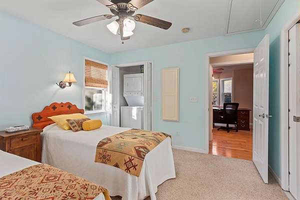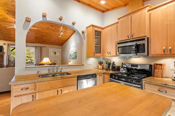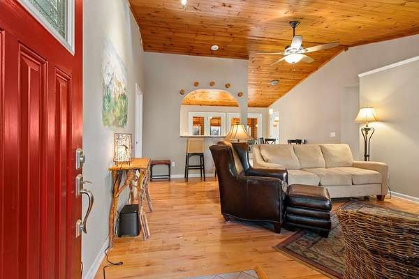 - Ceiling Fan(s), Granite Counters, Insulation, Kitchen Island, Laundry On Main, Pantry, Primary On Main, Smoke Detector, Vaulted Ceiling(s), Walk-In Closet(s), Washer/Dryer Connection, Wood Ceiling(s)