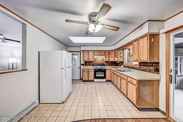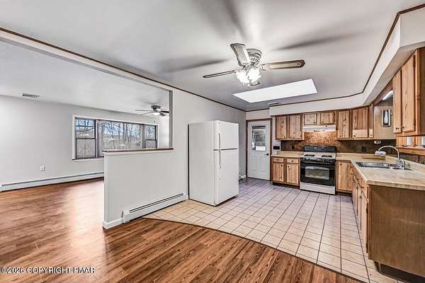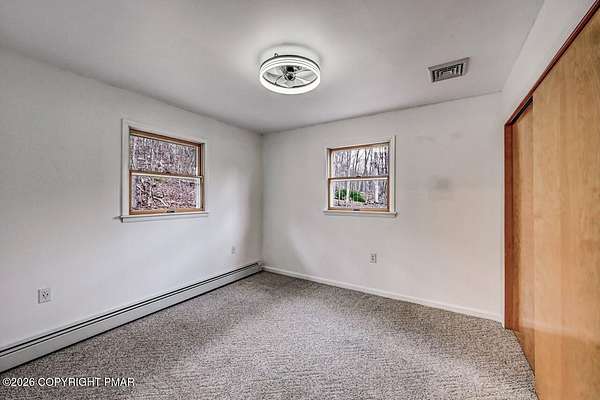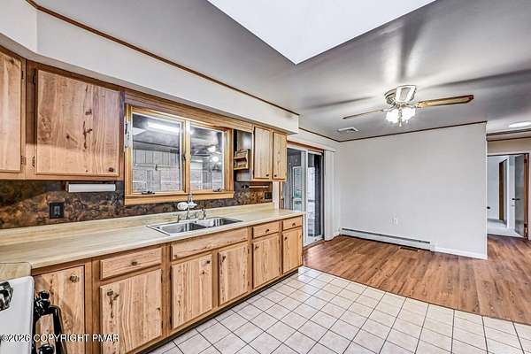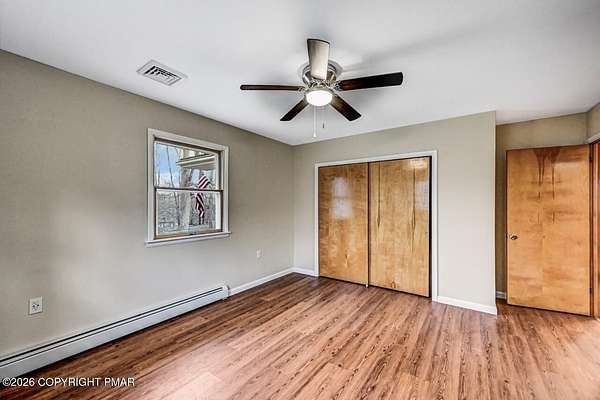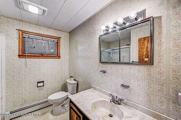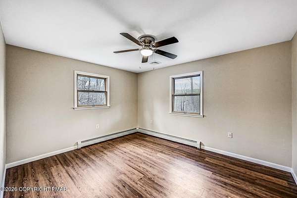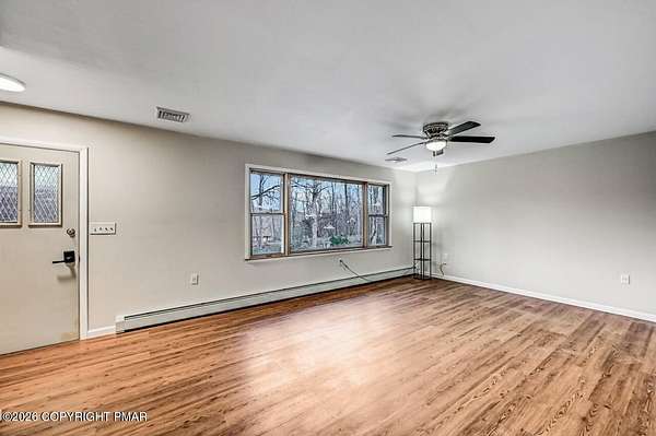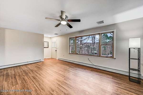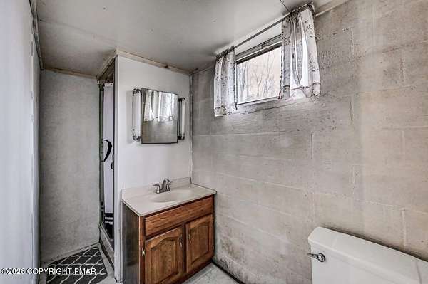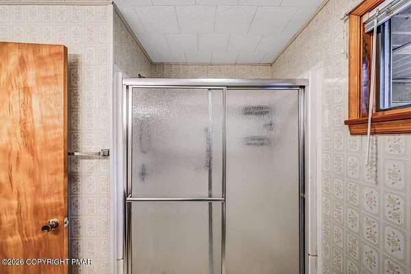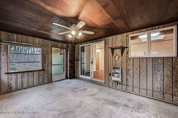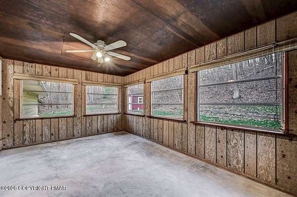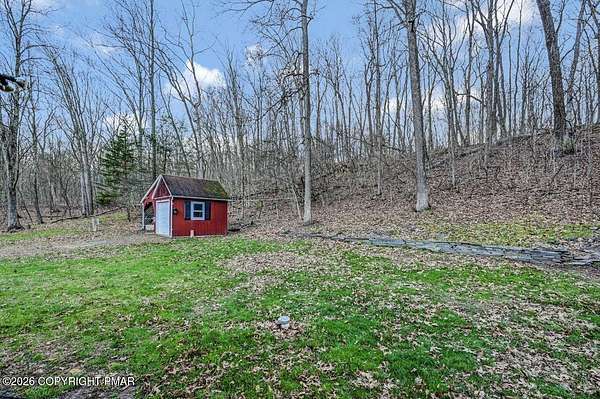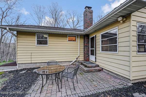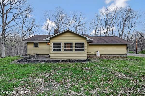 Rare Opportunity To Own 4.75 Acres Of Stunning Waterfront Property In The Poconos, Complete With A Picturesque Waterfall And Flowing Creek Running Alongside The Land! This Charming Ranch Home Offers Two Bedrooms And One Full Bath On The Main Level, Along With A Spacious Living Room And An Eat In Kitchen Dining Area Combination That Opens To A Bright Three Season Room And Paver Patio, Perfect For Relaxing And Entertaining While Enjoying The Scenic Setting. Additional Features Include An Attached Two Car Garage Plus A Detached One Car Garage With Lean To For Extra Storage Or Equipment. The Partially Finished Basement Offers Tremendous Potential With A Workshop Style Full Bath, Wood Stove, Laundry Hookup, And Plenty Of Room For Hobbies Or Future Expansion. Main Floor Stackable Laundry Hookup Is Also Available, Along With Convenient Attic Storage. A Truly Rare Find Offering Acreage, Water Features, Garages, And Endless Possibilities In A Beautiful Pocono Setting!