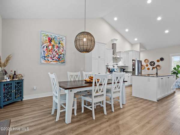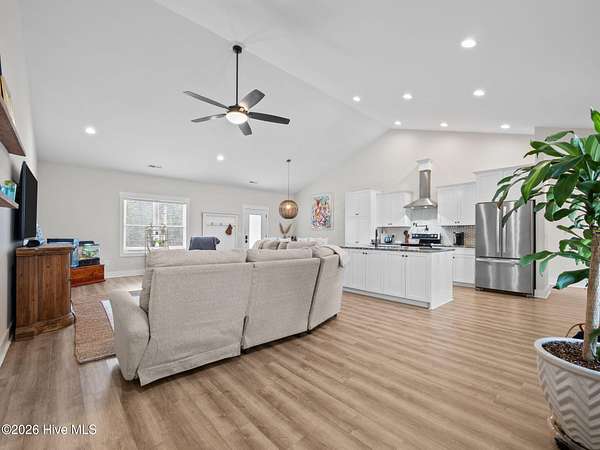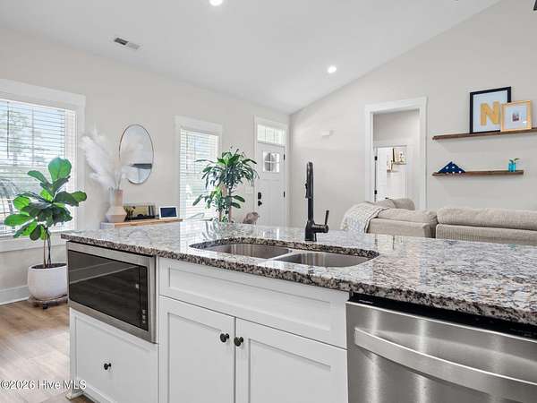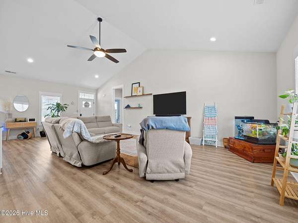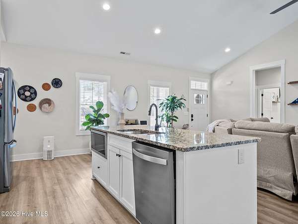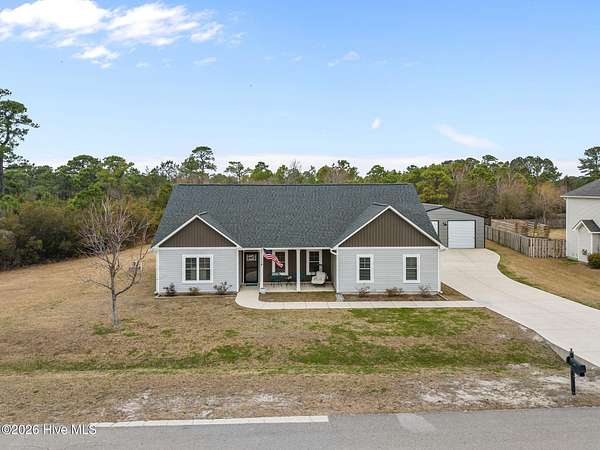 Discover like-new construction in this beautifully designed 3-bedroom, 2-bathroom home, perfectly situated near the stunning Crystal Coast Beaches and the charm of historic downtown Swansboro, NC. Step inside to an inviting open floor plan with modern LVP flooring that flows seamlessly throughout the main living areas. The stylish kitchen is a true centerpiece, featuring a spacious island, stainless appliances, a tiled backsplash, and a sleek hood vent. The primary suite offers comfort and luxury with a beautifully tiled shower and thoughtful finishes. Enjoy the benefit of a large, private lot along with a detached garage--ideal for storage, hobbies, or extra parking. This desirable community provides resort-style amenities including a pool, clubhouse, basketball court, playground, and scenic walking trails. Conveniently located close to Camp Lejeune and Cherry Point MCAS, this home blends comfort, convenience, and coastal living all in one. Schedule your showing today and experience coastal Carolina living at its finest!
