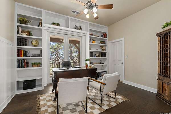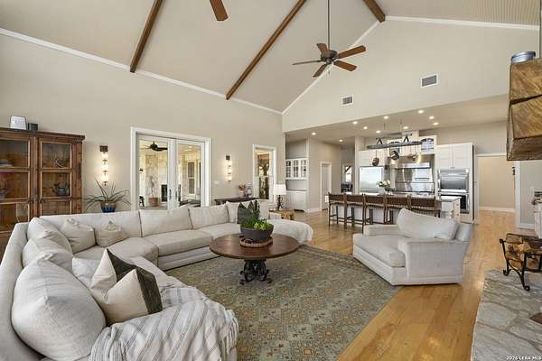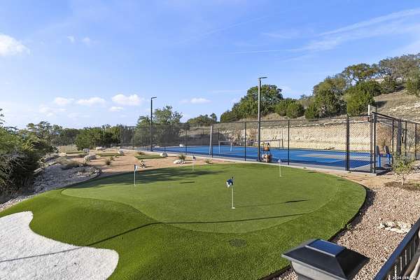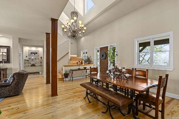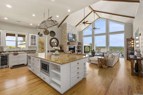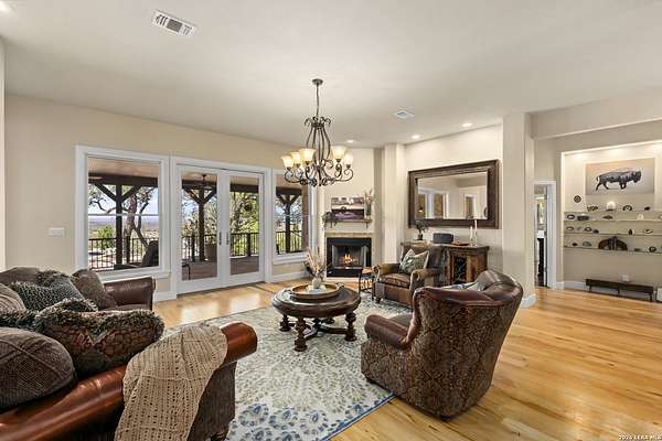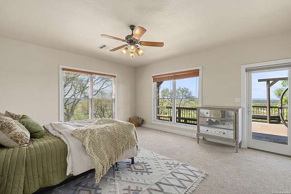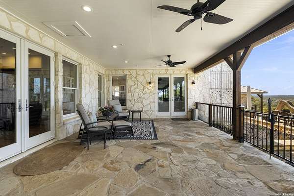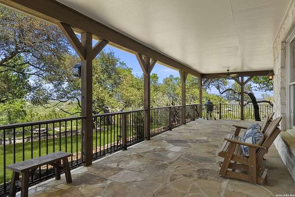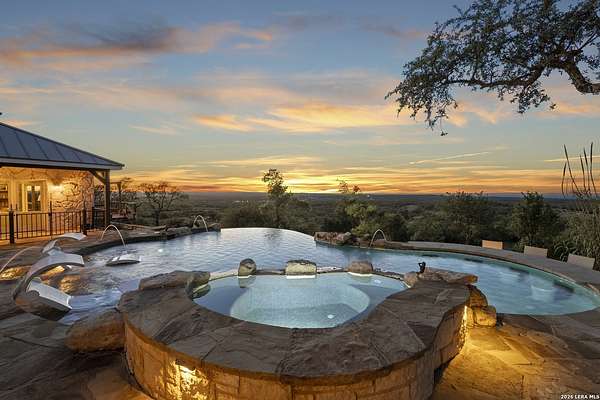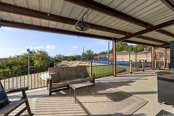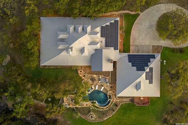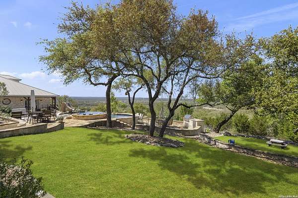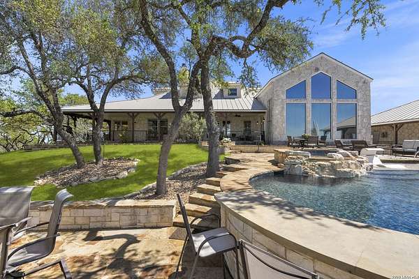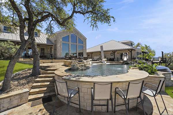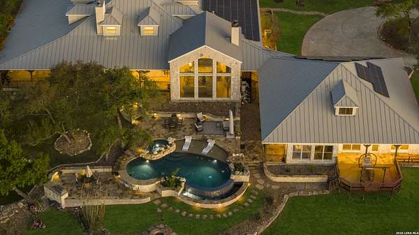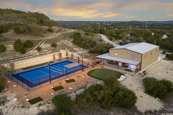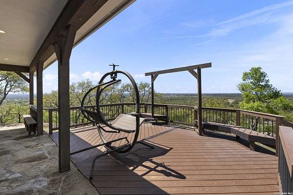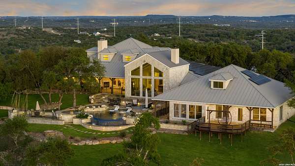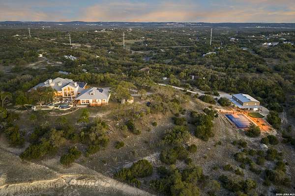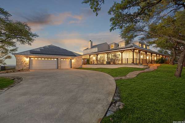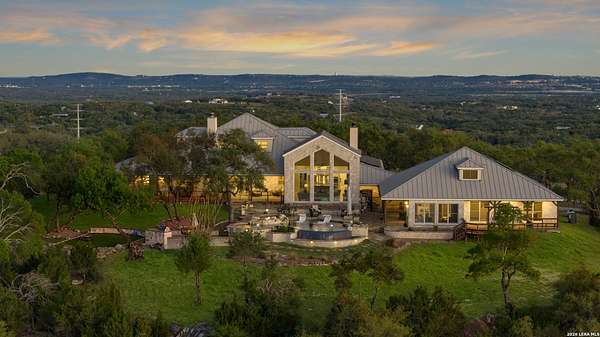Opportunities like this rarely present themselves. +/-10.23 acres set atop one of the highest elevations in Comal County, this extraordinary Hill Country estate offers a vantage point few will ever experience-overlooking not one, but two state parks, with sweeping, unobstructed views stretching for miles. Surrounded by a canopy of mature live oaks, the home seamlessly blends rustic Hill Country character with refined modern comfort. A wraparound porch invites slow mornings and sunset evenings, creating the perfect setting for both quiet reflection and effortless entertaining. Inside, walls of windows frame the landscape from nearly every angle, filling the home with natural light while constantly drawing your attention back to the breathtaking scenery. The main residence features 4 bedrooms and 4 bathrooms, thoughtfully designed for both comfort and privacy. A separate two-story casita offers an additional 2 bedrooms-ideal for guests who may intend to visit briefly but will find every reason to stay longer. From its private porch, take in stunning views of Guadalupe and Honey Creek State Natural Areas, with the iconic Sisters visible in the distance. For those who value lifestyle as much as location, the property also includes an impressive 2,400-square-foot flex space complete with its own porch, along with an outdoor sport court and pitching/putting green-perfect for recreation, relaxation, and entertaining against the backdrop of Hill Country sunsets. 40x60 detached metal barn with 12ft lean-to around half of the structure. Sports court is 50x80 with acrylic paint and lines. Putting green is 830sqft. This is more than a home-it's a rare piece of the Texas Hill Country, where privacy, elevation, and natural beauty converge in a way that simply cannot be replicated. Home is available for wildlife exemption summer of 2027 for bees.