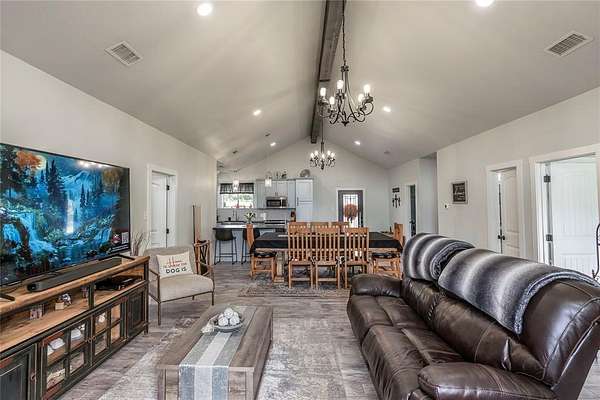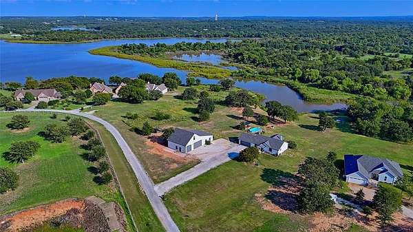 Modern Lakefront Living on Lake Nocona - Main Residence , Guest House with Shop & Pool on 2.65 Acres. Enjoy the perfect blend of luxury, comfort, and income potential with this stunning waterfront property on Lake Nocona! Built in 2021, this beautiful 3-bedroom, 2-bathroom 1530 sq ft home sits on 2.65 acres and offers everything you need for full-time living or a weekend getaway. Inside, you'll find a spacious open layout featuring a wood-burning fireplace, a stylish kitchen with leathered granite countertops, and a garage for added convenience. The primary suite includes a modern walk-in shower, while the guest bathroom boasts a relaxing soaker tub. Step outside to your private lakeside oasis, complete with a cabana, above ground pool, and plenty of space to entertain or unwind. Need extra room for visitors or rental income? The fully furnished 2-bedroom, 1-bath 1000 square foot guest house built in 2022 is ideal for guests or Airbnb income.