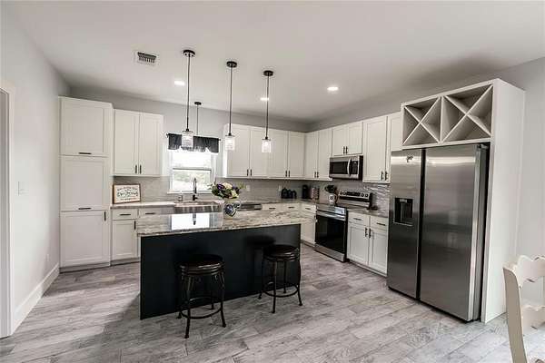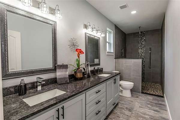 - Cathedral Ceiling(s), Decorative Lighting, Double Vanity, Eat-In Kitchen, Granite Counters, Kitchen Island, Open Floorplan, Vaulted Ceiling(s), Walk-In Closet(s)