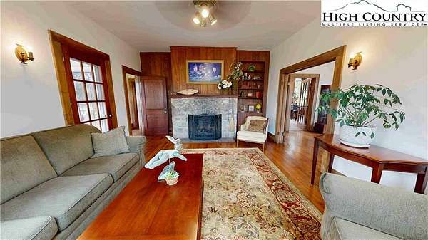 140 Library Lane is an iconic in-town historic estate offering nearly 3 private acres in the heart of Banner Elk. Perfectly positioned just steps from Lees-McRae College and moments from downtown, this rare property combines exceptional privacy, timeless character, and unmatched convenience. There is a total of 5 bedrooms and 4 baths with the apartment that is not counted in the total square footage. TOTAL LIVING SQ. FT. 3,923!. Enjoy walkable access to acclaimed dining, boutique shopping, concerts, festivals, and greenway trails, while surrounded by the serenity of mature trees, curated landscaping, and expansive grounds. The 4-bedroom, 3-bath main residence with 3,335 sq. ft. showcases craftsmanship rarely found today, with original hardwood floors, solid wood doors, wide baseboards, and rich wormy chestnut trim throughout. 3 impressive stone natural gas fireplaces anchor the living spaces and reflect the home’s historic charm. The original parlor offers warmth and character, while the spacious family room with abundant windows provides a welcoming gathering space with stone fireplace and rich wormy chestnut accents. There is an office that could be utilized in other ways on the main level. A formal dining area connects easily to the kitchen, creating ideal flow for entertaining. The kitchen features a stone fireplace, high-level granite countertops, a large island with seating, and generous cabinetry complemented by an impressive pantry with pull-out storage. There is a dining table here overlooking the landscaped yard for casual meals. A full laundry/mudroom with sink & storage provides convenient access to the stone patio and outdoor living areas as well as the garage. Upstairs, four bedrooms offer comfort and flexibility, each with its own character. The spacious primary suite includes a sitting area, office space, 2 walk-in closets, a full bath, enclosed water closet and walk-in shower, creating a private retreat within the home. Thoughtful updates enhance both comfort and efficiency, including updated siding, windows, and a new roof, while preserving the home’s architectural integrity. A beautifully designed deck extends the living space outdoors, overlooking the wooded acreage and providing an ideal setting for quiet relaxation. A fully furnished spacious 1-bedroom, 1-bath apartment with over 580 sq. ft. above the oversized heated 2 car garage offers exceptional versatility for guests, extended family, or rental income. The garage includes an EV-capable outlet, and the attached heated workshop with 220v/45-amp service is ideal for hobbies, wood working, studio use, or professional workspace. Additional storage buildings provide further utility. The nearly 3-acre grounds create a private, park-like setting within town limits, featuring stone patios, covered porches, perennial gardens, rhododendron groves, and open lawn areas. Zoned R-2, the property allows for accessory dwellings and home occupations, with potential rezoning opportunities subject to approval. Properties offering this combination of acreage, historic character, flexibility, and premier location are exceptionally rare. Library Lane is one of Banner Elk’s most desirable in-town settings—quiet, established, and adjacent to Lees-McRae College. Properties of this scale and proximity simply do not come to market often. Properties offering this combination of acreage, historic character, flexibility, and premier location are exceptionally rare. 4,900 TOTAL SQ.FT.