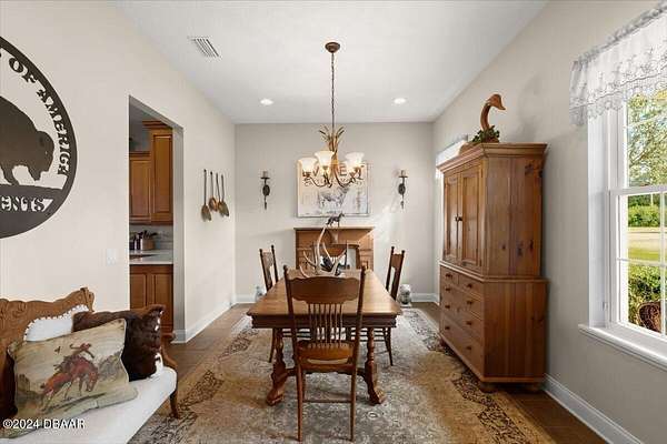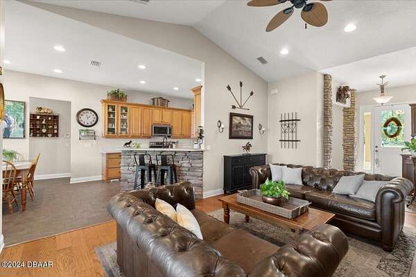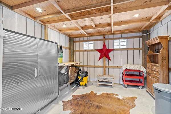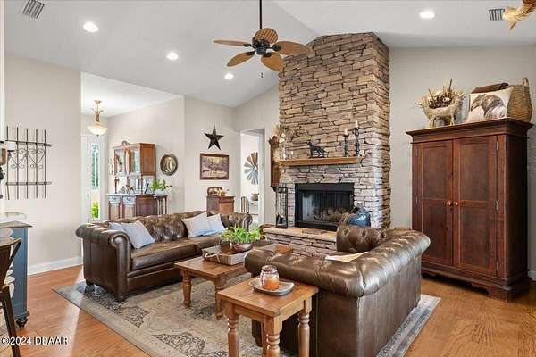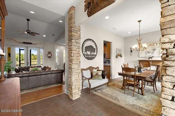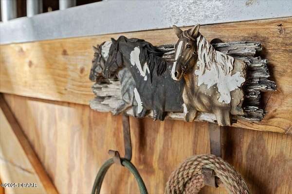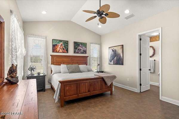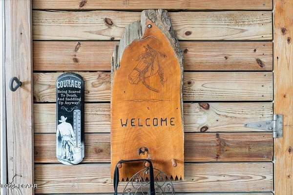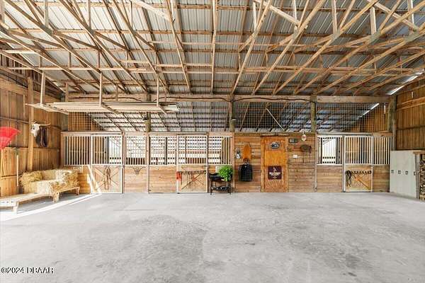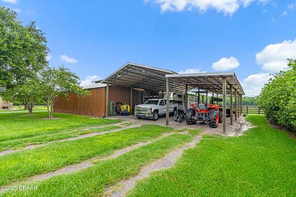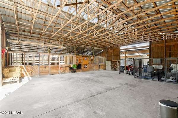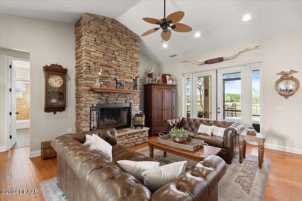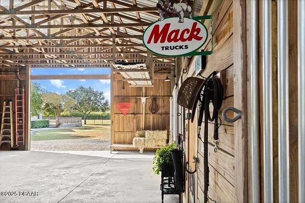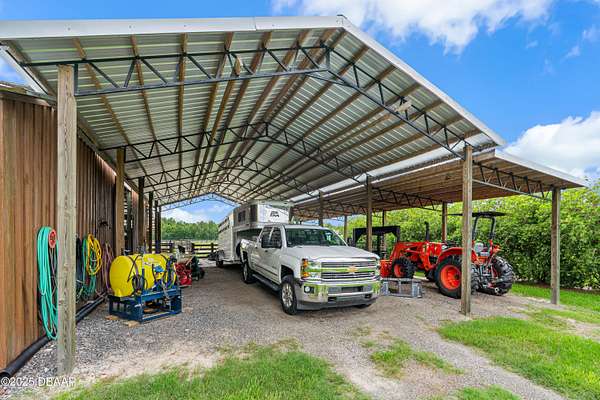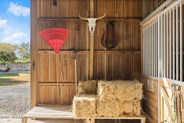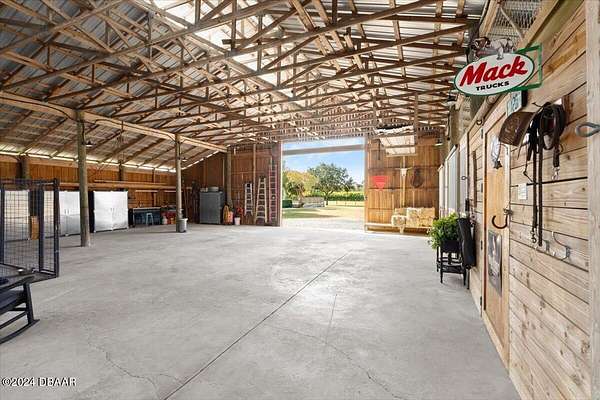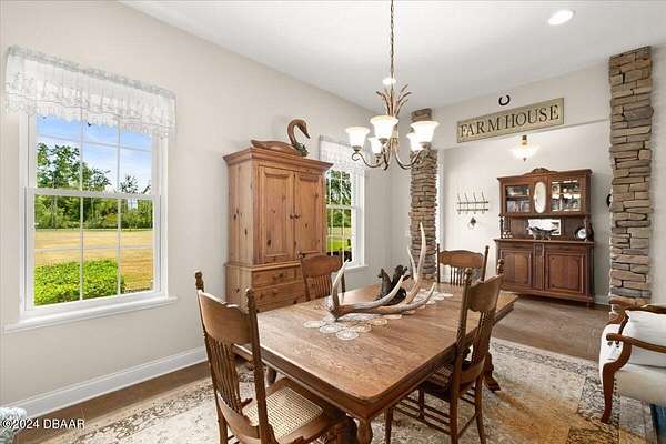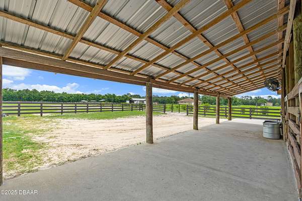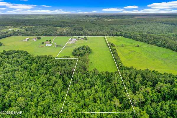 Welcome to 140 Little Brown Church Road-an equestrian's dream property tucked behind a solar-powered gate in the heart of Pierson, FL. This meticulously maintained 25-acre farm is designed for both the horse enthusiast and those seeking a peaceful rural lifestyle, just 10 minutes to town conveniences and 45 minutes to the beach. The land is fully fenced and cross-fenced with five pastures, each offering water access via seven underground hookups. A water wheel irrigation system keeps both yard and grazing areas green. The 48*72 metal wrapped, concrete-floored barn is a standout feature, complete with three horse stalls, tack room, workshop, water, and electric. Two pole barns (12*60 and 24*60) offer additional covered space for equipment or shaded turnout. Just minutes from Deep Creek Stables and Lake George State Forest, riders will enjoy access to thousands of acres of trails for pleasure riding, training, and community events. The area is well-known for its strong equestrian culture, including local barrel racing clubs and horse-friendly trailheads throughout Volusia County. The ranch-style home is equally impressive with a one-owner, move-in ready residence adorned with a 2018 metal roof, new (2023) Low-E windows, and a full suite of upgrades. Inside, enjoy 10-ft ceilings, engineered wood floors, a wood-burning fireplace with stone surround, and abundant natural light through French doors leading to a screened-in patio with tongue-and-groove pine ceiling. From there, step onto a 25x25 deck overlooking your pastures which are ideal for sunset dinners or morning coffee. The eat-in kitchen features granite counters, solid maple cabinetry, and all new appliances (2024). A spacious dining area makes entertaining a breeze. The primary suite boasts a luxurious walk-in shower, dual sinks, and a large walk-in closet. All bedrooms include walk-ins, and the oversized laundry room offers a sink, coat closet, and pantry. Additional highlights: pest tube system, whole house vacuum, whole house generator, surround sound wiring, and a new water softener and filtration system (2024). The garage includes a hurricane-rated door and sliding screen doors. Plus, you'll find cable in every room and access to fiber-optic internet, a rural luxury with high-speed connectivity. This property is truly a rare find for equestrian buyers and is beautifully maintained, perfectly located, and ready for both you and your horses. Bring your boots, bring your dreams. Square footage received from tax rolls. All information recorded in the MLS intended to be accurate but cannot be guaranteed.
