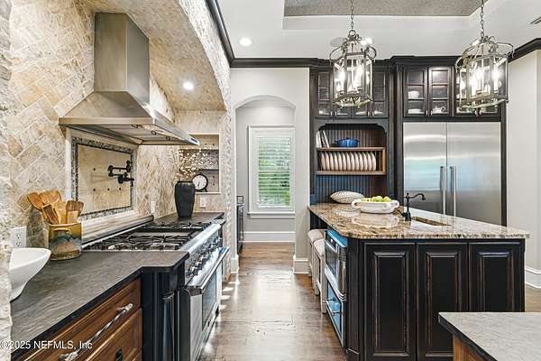 - Breakfast Bar, Breakfast Nook, Built-In Features, Butler Pantry, Eat-In Kitchen, Elevator, Entrance Foyer, Guest Suite, In-Law Floorplan, Kitchen Island, Open Floorplan, Pantry, Primary Bathroom -Tub With Separate Shower, Split Bedrooms, Vaulted Ceiling(s), Walk-In Closet(s), Wet Bar