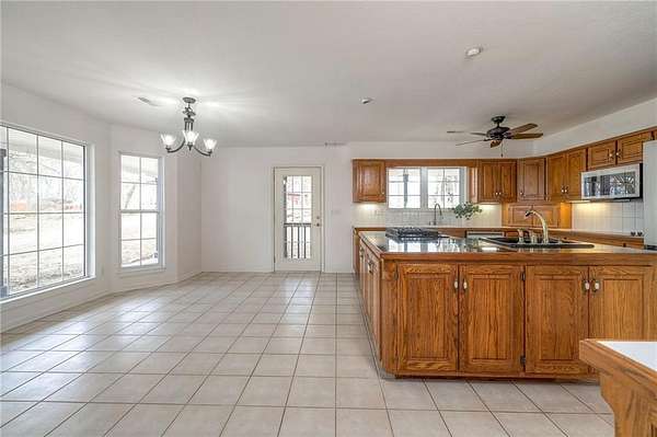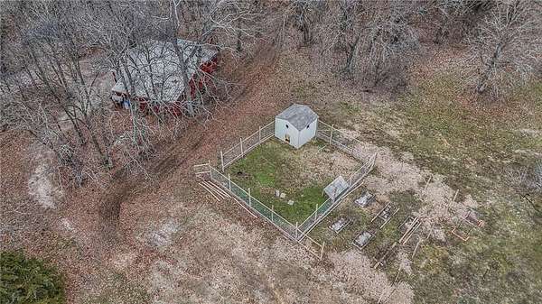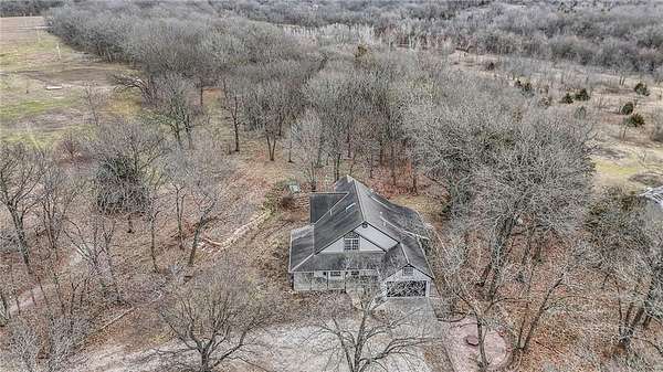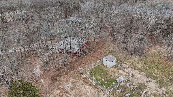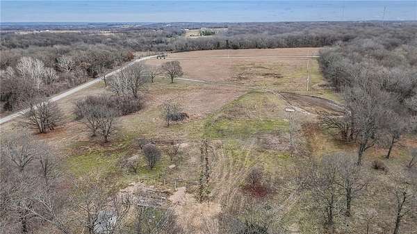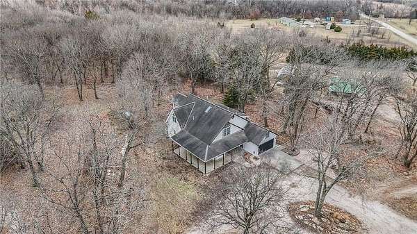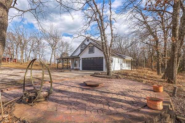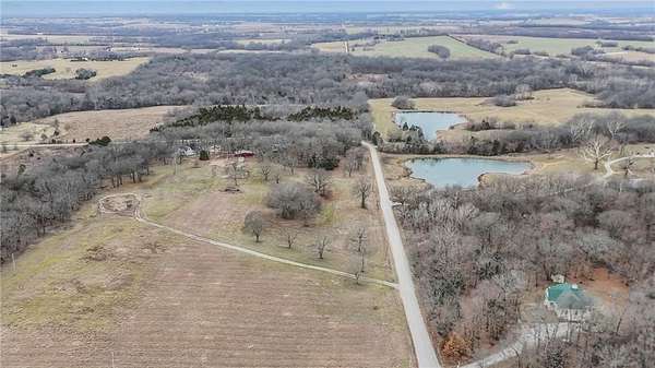 Discover an incredible opportunity to own a beautiful 23-acre hobby farm, with picturesque wooded areas and rolling pastures-ideal for outdoor enthusiasts, hunters, and anyone dreaming of country living! This unique property features a spacious 2,046 sq ft main home, freshly painted on the exterior and topped with a brand-new roof prior to closing for peace of mind. A welcoming covered porch invites you to relax and enjoy panoramic views of nature, while inside, the large kitchen boasts a gas and electric cooktop, refrigerator, two sinks and an island for gatherings. The master suite is thoughtfully designed to be wheelchair-friendly, with a spacious walk-in shower for comfort and accessibility. The main living room has soaring vaulted ceilings and expansive windows for great views outside to see the deer in the yard. Retreat upstairs to a cozy bedroom featuring a fireplace, built-in safe, and your own private covered balcony-the perfect spot for quiet mornings with coffee. Plus a 4th non conforming bedroom. For your guests or multigenerational living or a business office, the secondary living quarters (491 sq ft) comes complete with its own driveway for privacy and convenience. Enjoy the ultimate rural lifestyle with an outbuilding with a wood-burning stove, chicken coop, two carports, a pond, raised garden beds, garden shed, patio with fire pit, storm shelter, and an orchard. Additional highlights include three driveways, an average hay yield of 56 bales per year, and plenty of room for tree farm, nursery, gardening, livestock or future expansion. Nestled in a tranquil country setting, this property offers something for everyone.