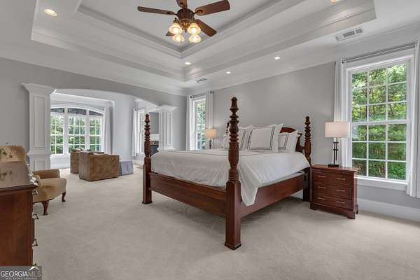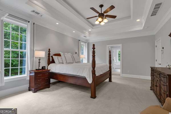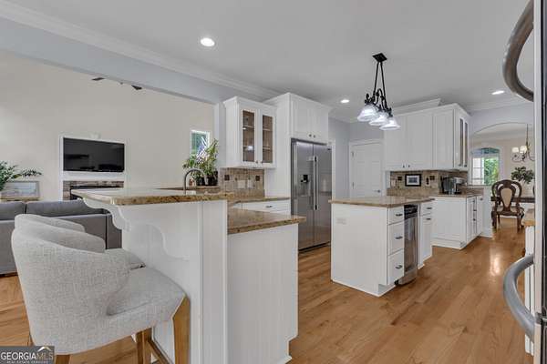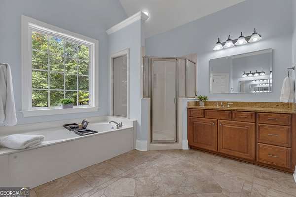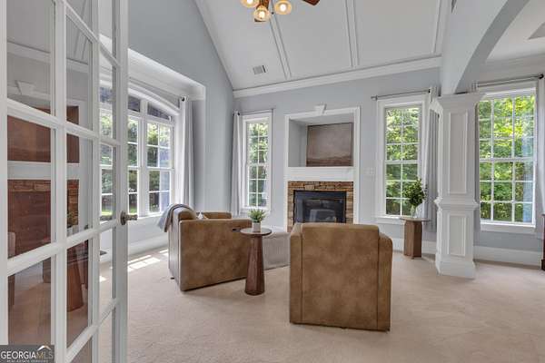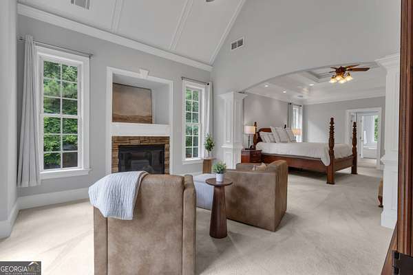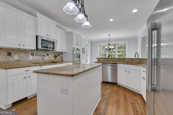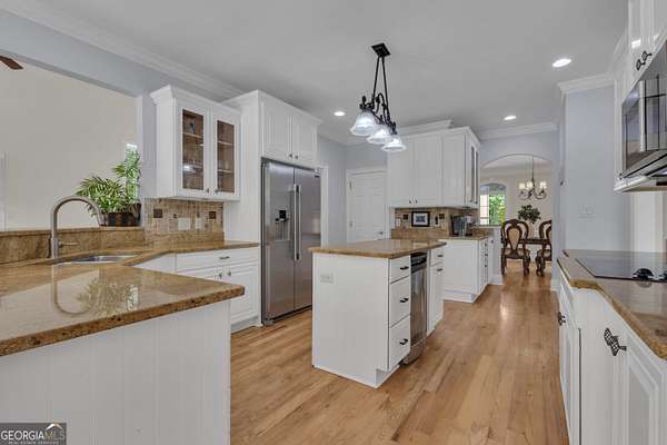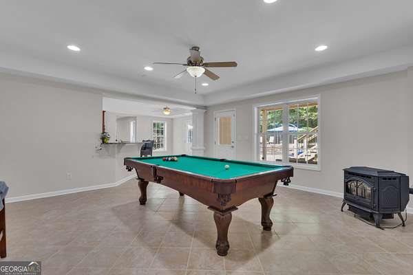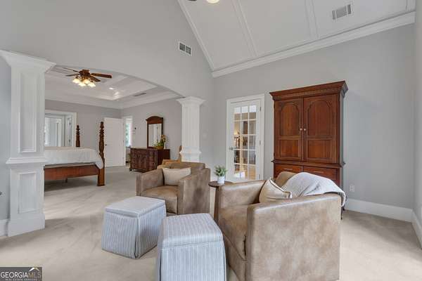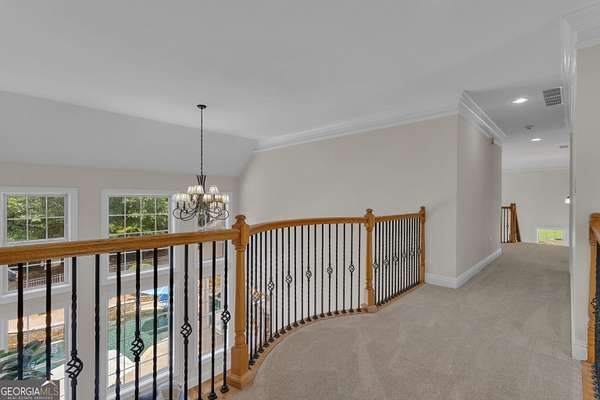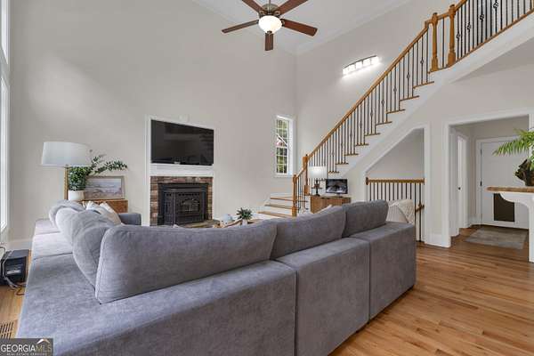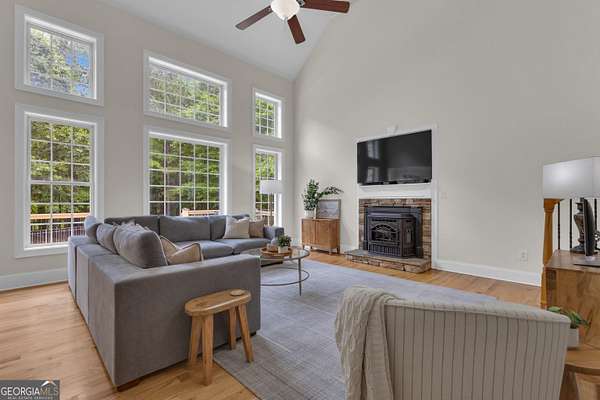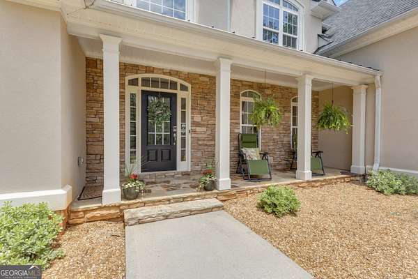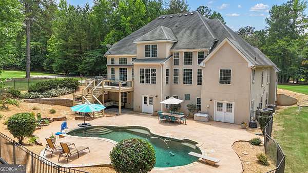 PRICED UNDER APPRAISALNEW ROOF (OCT 2025)**Welcome to your very own Private Sanctuary nestled behind an automated front gate & embraced by over five lush, private acres, this extraordinary estate invites you into a world where elegant design meets serene nature & resort-style living. The long, expanded concrete driveway winds gracefully to the home's stately front, where manicured landscaping & a welcoming facade set the tone for the refined comfort that lies within. Step through the front door into soaring spaces, where rich hardwood floors & exquisite custom moldings echo timeless craftsmanship. Walk into a grand two-story formal living room drenched in natural light that reveals a breathtaking wall of windows that frame the resort-style Pebble Tec pool & waterfall beyond. The heart of the home is the chef's kitchen, thoughtfully designed with granite countertops, stainless steel appliances, double ovens, gas-line-ready stove, pot filler, custom cabinetry with pull-outs, & a central vacuum kickplate beneath the stove. There's a butler's pantry with a wine fridge, sink, & coffee bar that connects seamlessly to the dining area. A breakfast nook & bar overlook the vaulted family room, where a Quadra-Fire programmable wood pellet stove provides warmth & ambiance with clean, efficient heat. The main level owner's retreat is a sanctuary in itself-complete with a large sitting area, fireplace, & double trey ceilings. His-&-her walk-in closets & a spa-inspired en suite bath featuring travertine floors, marble walk-in shower, & soaking tub provide the perfect balance of luxury & tranquility. From the kitchen, step out onto the expansive deck-just re-stained & equipped with a retractable awning & gas line hookup-ideal for summer grilling & evening relaxation. Follow the gentle path to your private backyard oasis: a deep saltwater pool with a diving board, waterfall, & sun shelf, all surrounded by wrought iron fencing & rock terracing. The pool's features & cleaner are controlled by smartphone, making maintenance effortless. There's a firepit for cool nights, an underdeck sitting area pre-wired for a fan, & a gas line for a grill on both upper & lower decks. The upper level of the home offers four spacious bedrooms-two with private baths & two sharing a full bath-all with ceiling fans & bright natural light. The terrace level, finished with 10-foot ceilings, is its own private retreat: a full kitchen with granite countertops, stainless appliances, bar seating, direct walkout to the pool area for easy indoor-outdoor cooking. Additionally, two bedrooms one with a sitting area complete with fireplace, 2 bathrooms, media room, workout space, storm shelter, & ample storage. A second Quadra-Fire pellet fireplace warms this level, there are three walkouts that lead to the underdeck patio & pool-a quiet totally private area of this peaceful property. Behind the home, three additional acres of wooded greenbelt with walking trails welcome deer & offer quiet escapes into nature. The property is ideal for bringing your horses or chickens, thanks to its quiet setting, free of road noise & traffic. Additional features include a 3-car garage with workbench & doggy door to a dog run, RV parking with 30-amp service, a 600-gallon buried propane tank, two gas water heaters, Nest thermostats controlling four regularly serviced AC units, an 11-zone sprinkler system with app control, LED lighting throughout, & a security camera system ready to stay. With both front & rear hardwood staircases, fresh interior paint (2025), resurfaced floors (2021), & newer carpet (2023), this home has been lovingly maintained & upgraded for modern luxury living. It's more than a home-it's a private, peaceful sanctuary designed for comfort, connection, & the beauty of everyday life. This home offers privacy with easy access Top Rated Schools (Whitewater), Hartsfield International Airport, Trilith, New Soccer Facilities, shopping, dining, & hospital.