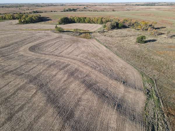 This 263 acres of dryland farm ground consists of mainly Harney Silt Loam soils at 0-3% and Geary Silt Loam at 3-7% slope. No - till farming and the addition of terraces and waterways have improved soil conditions and worked to control erosion to improve the overall productivity of this farm.