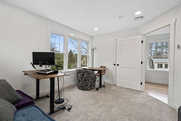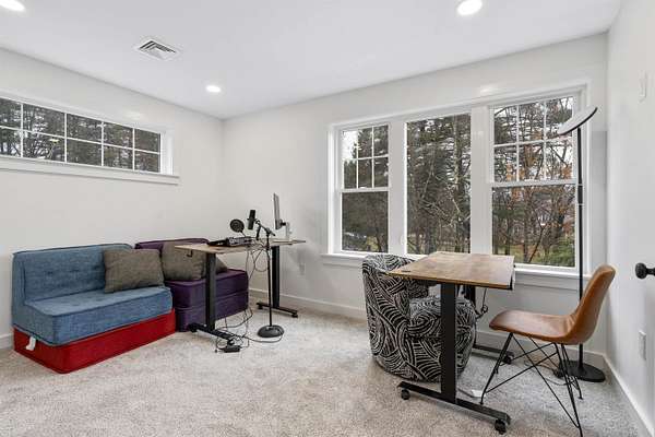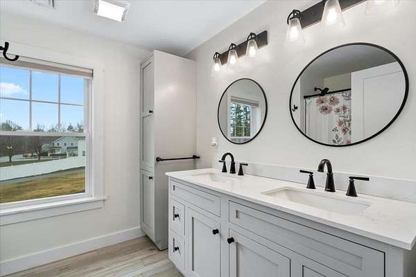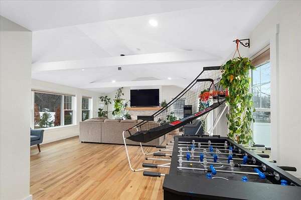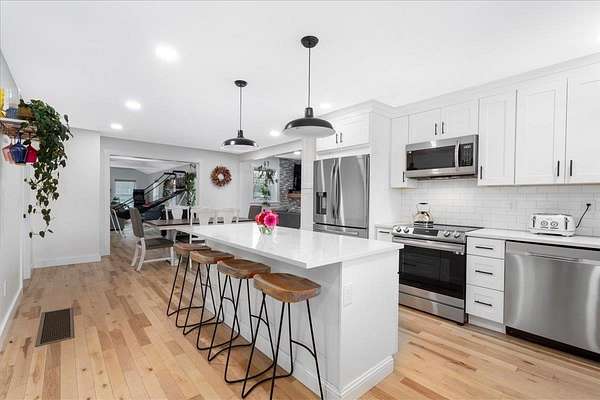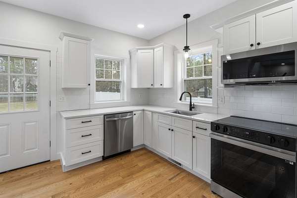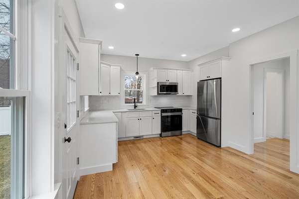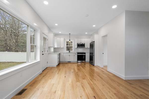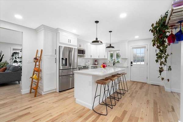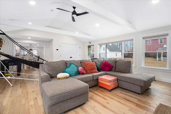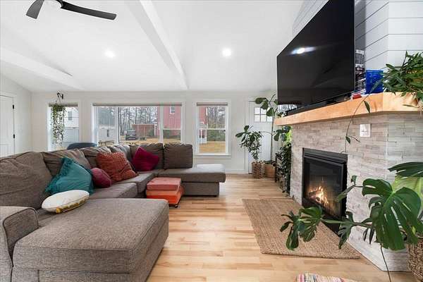 COMPLETELY RENOVATED Multigenerational Compound with Detached ADU in the heart of Goffstown! The Homeowner spent years renovating and adding to this GEM! LUXURY LIVING AT ITS BEST! A gracious covered porch leads to light-filled, open-concept living where no detail was overlooked. The welcoming living room with its mesmerizing fireplace, gleaming hardwood floors and exceptional natural lighting define tranquility. The expansive opening into the kitchen and dining area lures you in for a tour. The wood floors continue into the sun filled kitchen, dining area and great room. Guests gravitate to the kitchen island to enjoy crafted cocktails and h'orderves. Quartz countertops, classic white subway title and custom built cabinets complement the stainless steel appliances. Stunning powder room off the kitchen has a convenient walk-in shower and washer/dryer. Relax after dinner in the newly built GREAT ROOM. The Cathedral Ceilings are anchored by a wall of over-sized windows looking onto the back yard. Enjoy morning coffee or dine al fresco listening to the songbirds on the expansive trex deck. 3 new bedrooms and full bathroom complete the upstairs. The front 2-car garage is equipped with an EV Charge Level 2! Completed in 2024, the DETACHED ADU renovation is a 1BD/1BA with open concept living, natural lighting, and cathedral ceilings with the opportunity to add a room. The property is 0.96 acres per attached survey. The assessed town taxes are based on 1.60 acres and will be adjusted when the property is sold to reflect this. There is an easement for a partially shared driveway. 48 hour advance notice to accommodate the tenants.