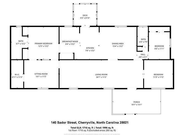 From downtown Cherryville, head south on North Mountain Street toward West Main Street. Continue onto South Mountain Street and follow it as it becomes Marys Grove Church Road. Turn left onto Sador Street and continue straight. The home will be located along Sador Street within the residential neighborhood.
