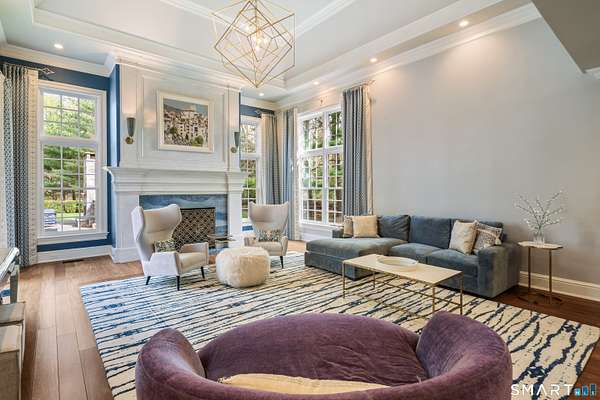 Discover the epitome of timeless luxury in this magnificent Colonial Chateau-style residence. Perfectly situated on two flat, meticulously landscaped acres in a coveted walking neighborhood, this home offers unparalleled privacy while remaining just moments from town and top-rated schools. This quiet, no-cut-through street is a haven for outdoor enthusiasts, offering exceptional bike riding and walking routes right from your door. The active neighborhood association fosters a true sense of community-think spirited trick-or-treating, seasonal gatherings, and friendly faces at every turn. Enjoy the best of both worlds: peaceful residential living with convenient access to prime roadways for an easy commute. The interior is a masterful blend of elegance and comfort, featuring six spacious en suite bedrooms and an astounding eight indoor fireplaces that create warmth and ambiance throughout. Designed for grand entertaining and modern family living, the home boasts multiple family rooms, ensuring ample space for every occasion. Indulge your passions in the dedicated wine cellar and the custom-designed sports den. The sophisticated primary level flows seamlessly to the breathtaking exterior amenities, which include a built-in pool for summer relaxation and a beautiful outdoor fireplace for year-round enjoyment. Completing this exceptional estate are four spacious garage bays, providing abundant storage and convenience.