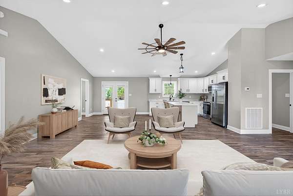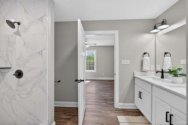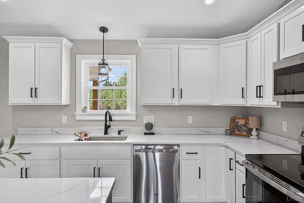 Open House Cancelled! New construction on 1.5-acre lot in Stoney Creek subdivision, located on a private cul-de-sac in a walkable community. Convenient to Route 29 with easy access to Lynchburg and Charlottesville. Minutes from local grocery stores and restaurants. Top-notch craftsmanship throughout. Main-level living with primary suite featuring large bath, double vanity, and walk-in closet. Open floor plan with spacious kitchen, island, vaulted ceilings, shiplap accents, and gas fireplace. Full unfinished basement offers 1,600+ sq ft for future expansion. Covered vaulted front porch and private covered rear deck. Enjoy beautiful sunset views over the mountains from the front porch. Privacy trees recently planted.