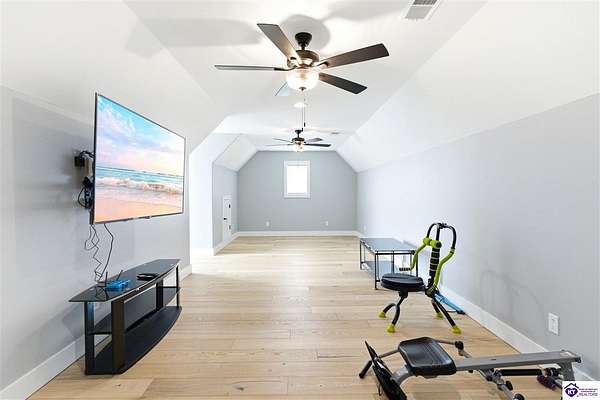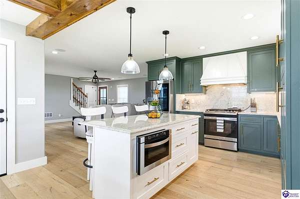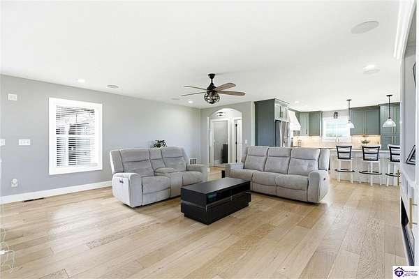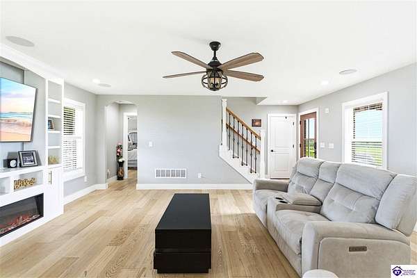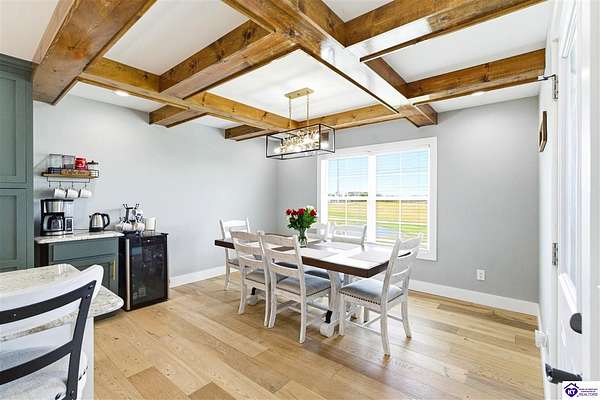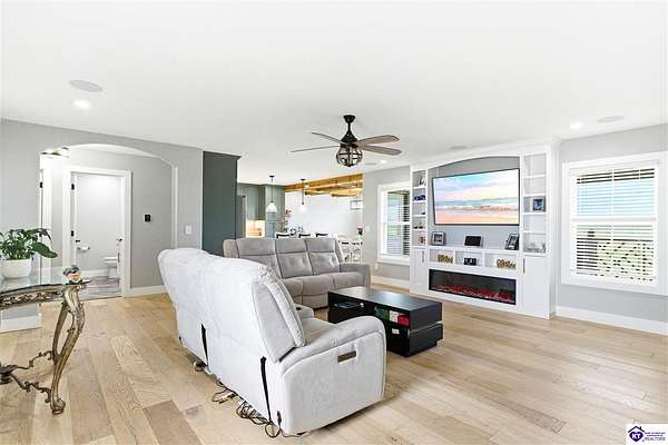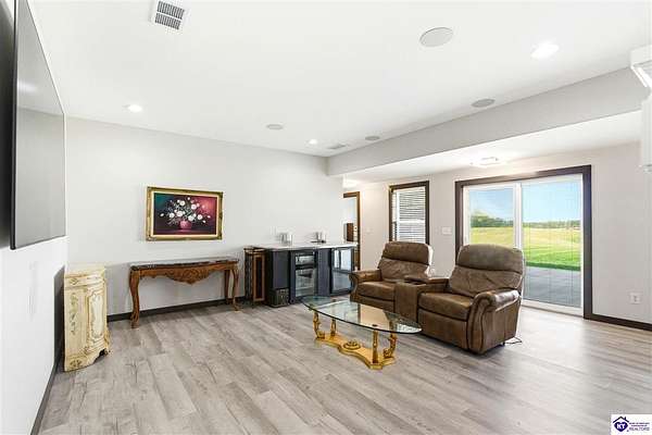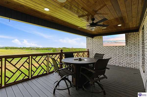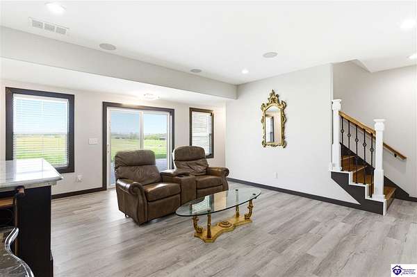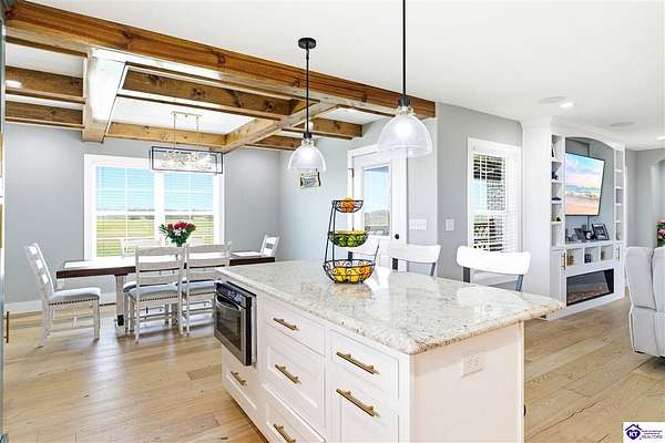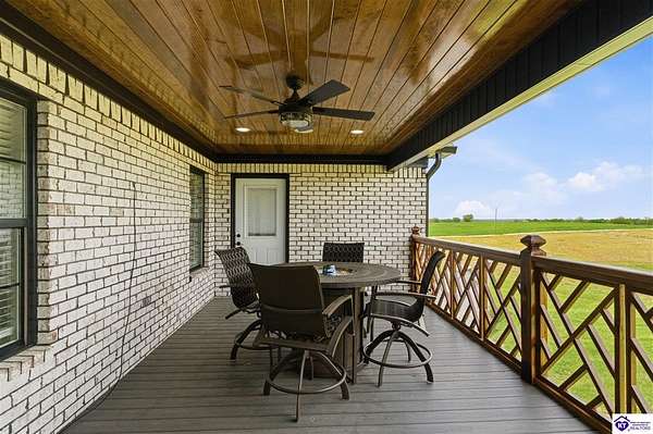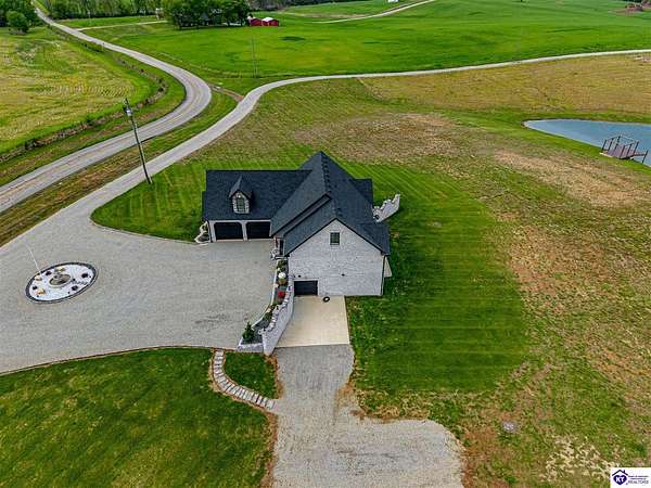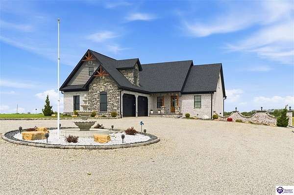 Why wait years to build when your absolute dream home is standing ready right now? This is the rare opportunity to skip the construction stress and move directly into a 2024-built architectural masterpiece sitting on over 15 pristine acres of pure tranquility. This stunning all-brick estate is a rare jewel in today’s market, offering the perfect combination of modern luxury, wide-open space, and total peace of mind. From the moment you arrive, you will feel completely at ease knowing the entire property is protected by a professional-grade security camera system already installed throughout the home. Inside, you are greeted by a breathtaking open living space defined by soaring ceilings, elegant built-in bookshelves, and rich engineered hardwood floors. The atmosphere is further enhanced by an integrated surround sound system that carries your favorite music throughout the entire home. The chef-inspired kitchen is a dream come true, featuring a massive bartop where family can gather, all leading into a magical dining room adorned with beautiful ceiling beams. Every inch of this home showcases superior craftsmanship, from the custom rounded doorways to the intricate architectural details in the ceilings of every bedroom. The layout is designed for effortless living, with the primary suite and laundry conveniently located on the main level. The primary bathroom is a true show-stopper, featuring exquisite tile work, a deep soaking tub, and a custom shower that feels like a private spa. Upstairs, the children have their own secluded sanctuary with two spacious bedrooms located at opposite ends of the house, separated by a large flex room perfect for a playroom or study. The luxury extends all the way to the fully finished walkout basement. This massive additional living space is ready for your movie theater, a secondary entertainment hub, and features extra guest quarters. There is even a built-in storm shelter for the ultimate safety of your family. Outside, your private oasis awaits on the covered back porch, which is already pre-wired for a jacuzzi and an inground pool. Imagine looking out over your 15 acres of rolling fields and mother nature at its finest. An opportunity of this caliber—a fully finished, high-tech new construction on significant acreage—is nearly impossible to find. Do not wait for the "perfect" home to be built; it is standing here, safe and sound, waiting for you. Call today for your private viewing before someone buys your home.
