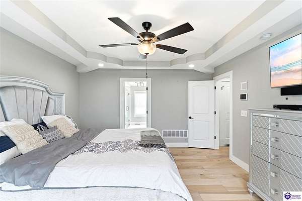 - Bookshelves, Ceiling Fan(s), Chandeliers, Closet Light(s), Tray Ceiling(s), Walk-In Closet(s)