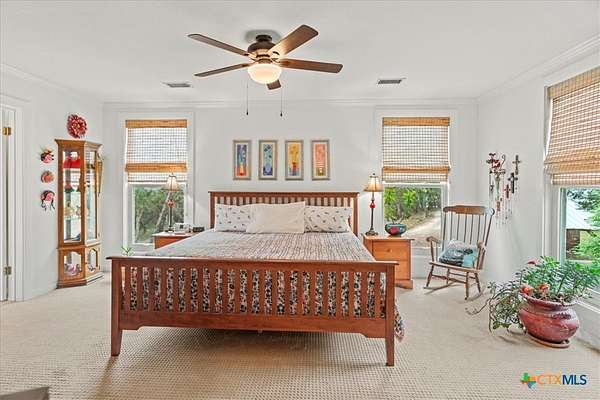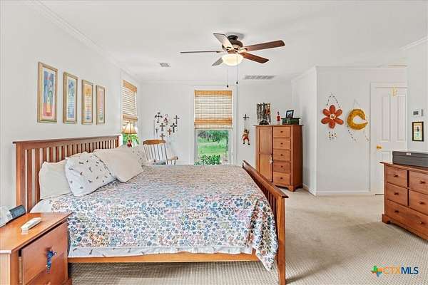 - Breakfast Bar, Ceiling Fans, Crown Molding, Granite Counters, Pantry, Recessed Lighting, Separate Shower, Shower Only, Stone Counters, Upper Level Primary, Walk In Closets