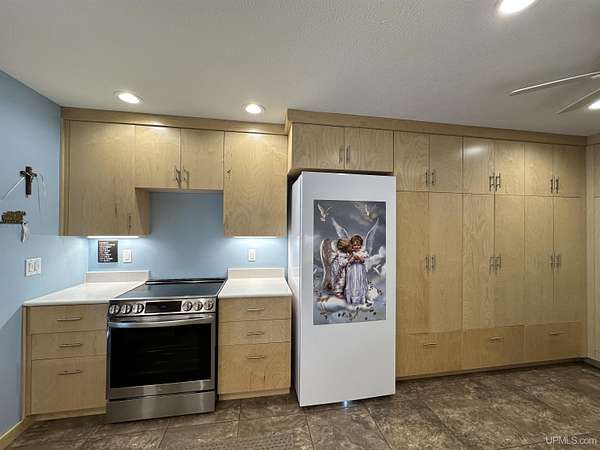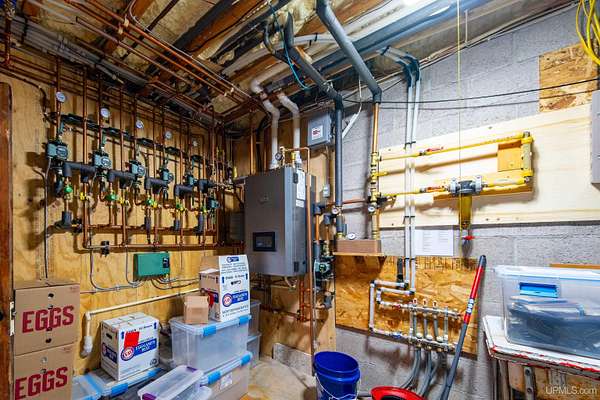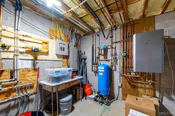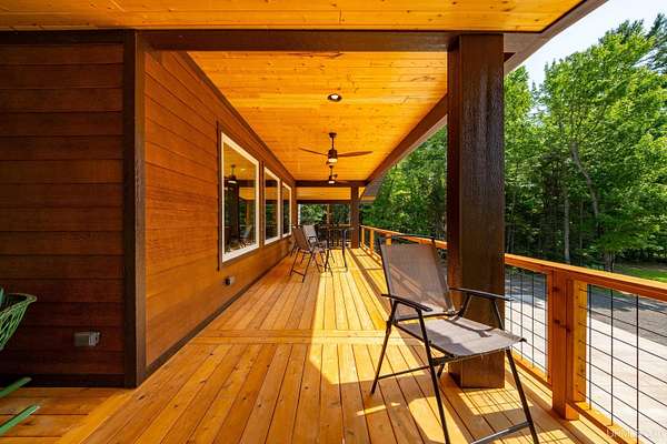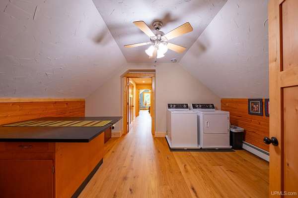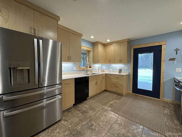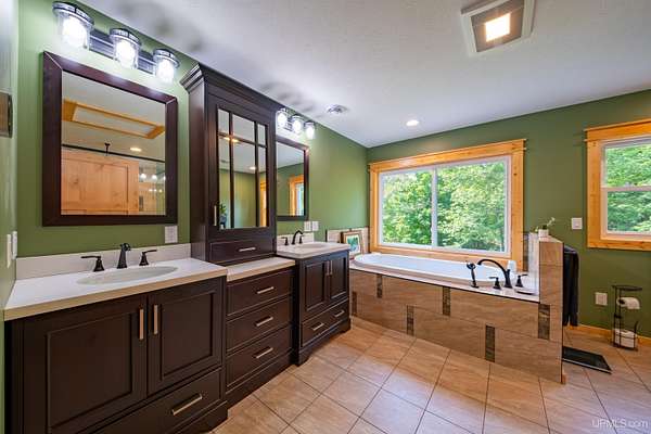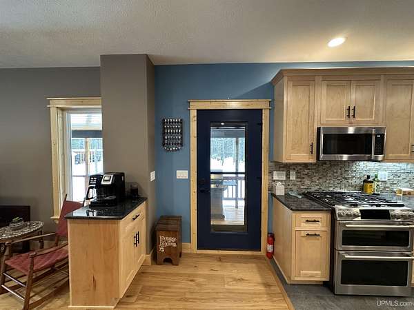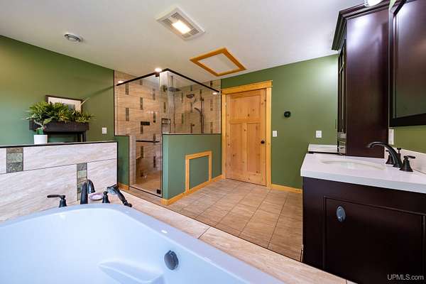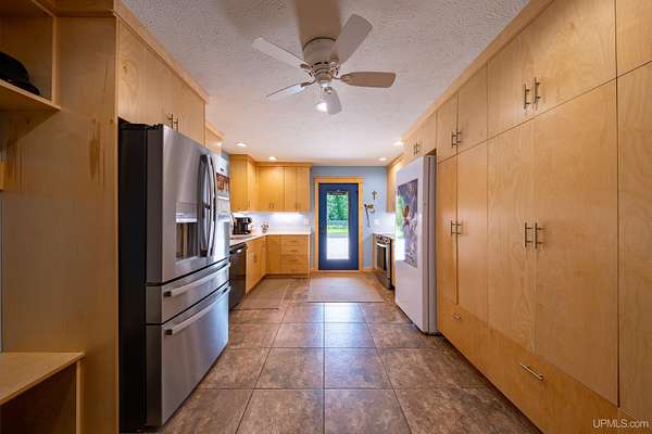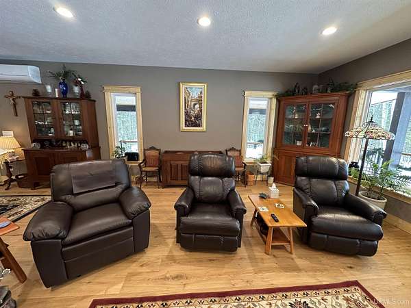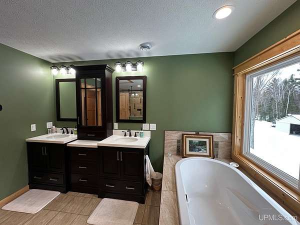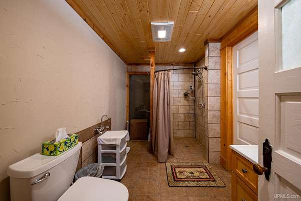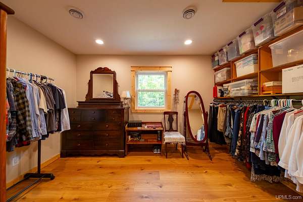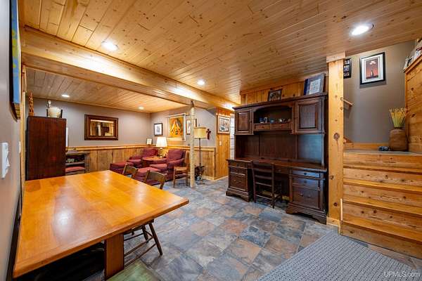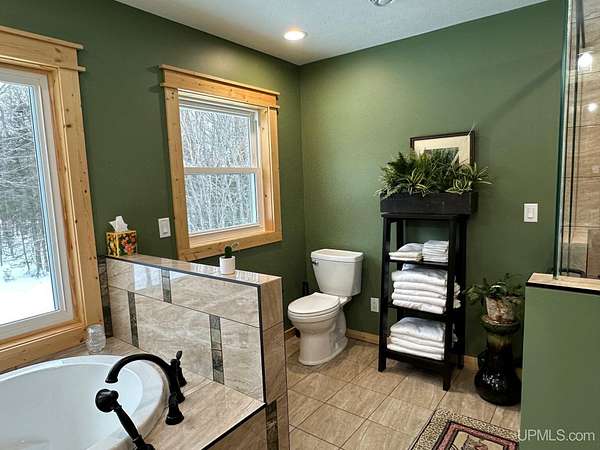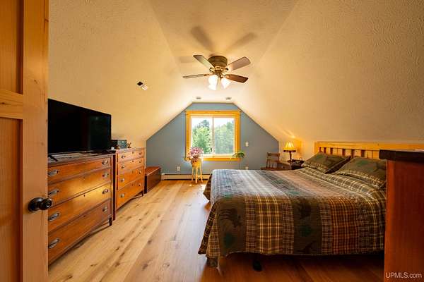 Stunning 4/5 bedroom, 2.5-bath home with 2-full kitchens was originally built in 2001 & extensively renovated and expanded. Located just 15 minutes from Ishpeming & adjacent to the Hoist Basin. This beautiful wooded 10-acre non-association property offers ATV/walking trails, and exceptional privacy surrounded by maple, birch & massive white pines. High-grade material construction and fixtures are showcased throughout (see virtual & video tours). A wide concrete apron leads to an expansive cedar wraparound deck, about 3/4 covered, accented by tongue-and-groove ceilings and a charming spiral staircase. Nearly every room offers serene, wooded views. Outdoors also feature a large, fenced garden and a versatile shed (previously a chicken coop) equipped with electricity and running water. Outbuildings include a 20'x19' detached, heated garage with 9' ceilings, a 24'x30' pole barn with poured concrete floors, electric, and water, and three high-ceiling 16'x16' lean-to bays for storing recreational gear or equipment. Mechanical systems are high-efficiency: a new NTI propane boiler with six heating zones, PEX plumbing, on-demand hot water, and a backup Hardy stainless steel outdoor wood boiler that heats the house, garage, and water. The entire home is outfitted with radiant in-floor heating and central A/C via a heat pump rated for subzero temps. Foam insulation in the roof, walls, and floors ensures optimal efficiency, paired with a hidden-fastener metal roof and low-E, argon-filled safety-rated windows. Interior flooring features Swedish "Valinge" 1/2 " real oak throughout. The walk-out lower level is ideal for a guest suite, Airbnb, or in-law suite, offering a full second kitchen with quartz countertops and custom birch cabinets, a tiled barrier-free full bath, laundry hook-ups, an office/bedroom, a mechanical room, and a large den for relaxation & entertaining. The main level showcases 9' ceilings and a spacious Great Room with three oversized picture windows that frame views of the surrounding forest and garden. A Pacific Energy high-efficiency enamel wood stove offers excellent supplemental heat. The open-concept main kitchen is fully outfitted with GE Cafe appliances, solid maple custom cabinetry, granite countertops, a large eat-in island, and ceramic tile flooring. This level also features a half bath and a versatile bedroom that can serve as an office or den. Three entry doors provide direct access to the wraparound deck, creating seamless indoor-outdoor living. Upstairs, you'll find 2/3 additional bedrooms, including a private master suite with scenic views, a walk-in closet, and a luxurious bath featuring a soaking tub and a digital four-head walk-in tile shower. The upper level also includes a second spacious bedroom and a large laundry room that doubles as a craft or hobby space. This is a rare opportunity to own a thoughtfully, energy-smart, move-in-ready retreat in a peaceful and private setting, perfect for those seeking comfort & adventure!