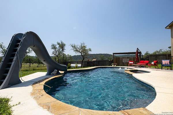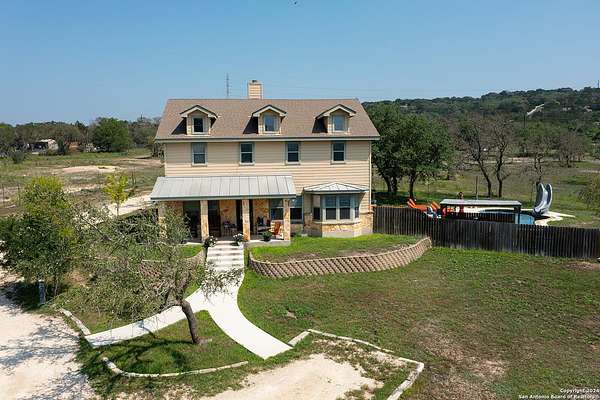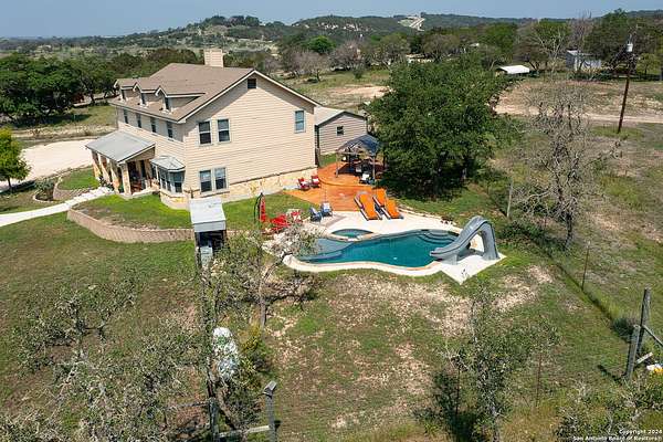 Unbeatable Opportunity! Rare and private 60-acre property with unrestricted land and breathtaking views! Perfect for outdoor enthusiasts and hunters with abundant exotic wildlife. The property features two homes: a charming 4-bedroom, 3-bath main house with a spacious bonus room, open kitchen with brand new Quartz counters, a master suite on the main floor, a cozy rock fireplace, a fenced-in rock patio, a pool, jacuzzi, and a waterslide. Plus, there's a newer 4-bedroom, 3-bath guest home with a welcoming screened front porch and a fenced backyard, ideal for pets. The property also includes a working water well and Ag Exempt pastureland, with plenty of space for horses. Conveniently located just 5 minutes from downtown Kerrville and I-10, 30 minutes from Fredericksburg, and an hour from San Antonio. A major hospital is also nearby. Situated next to the prestigious Twin Springs community with 20-acre minimum ranch sites, this is an exceptional property for a family retreat or an outstanding investment opportunity. There's no HOA, and the land is sub-dividable. Make this your perfect Texas Hill Country escape!