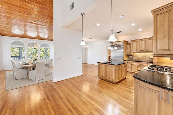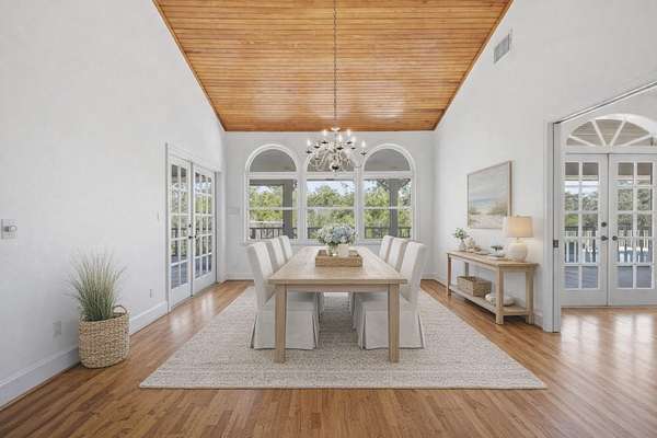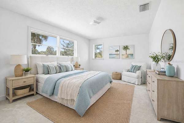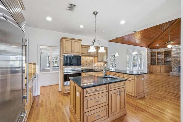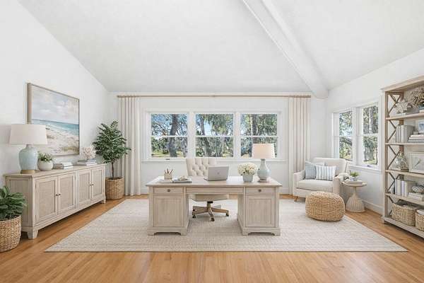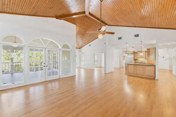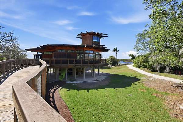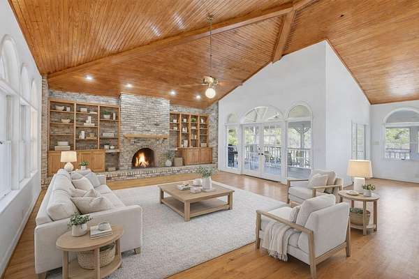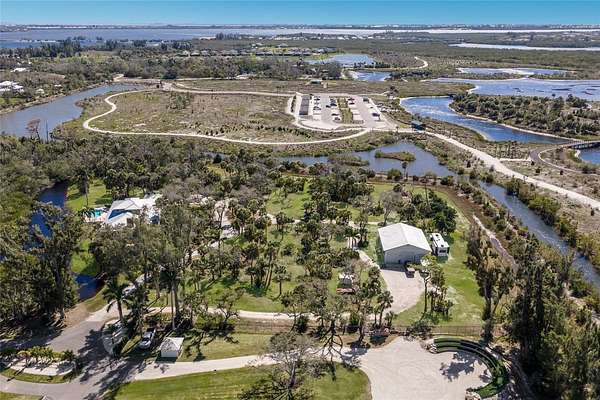 One or more photo(s) has been virtually staged. A truly irreplaceable estate offering, this five-plus-acre lakefront property backing to Robinson Preserve represents one of the rarest opportunities in all of Northwest Bradenton. This elevated coastal residence offers more than 3,300 square feet of living space surrounded by water, mature oaks, and protected natural beauty, just minutes from Anna Maria Island and Palma Sola Bay. Five-acre parcels in this highly sought-after coastal corridor are extraordinarily limited, and properties that border the preserve are even more scarce, creating a setting that simply cannot be replicated. An oak-lined approach leads to a private estate atmosphere defined by expansive green space, lake views, and complete tranquility. Designed to embrace its surroundings, the elevated home features expansive porches and French doors that seamlessly blend indoor and outdoor living. Inside, soaring vaulted wood ceilings, exposed beams, rich hardwood floors, and a dramatic brick fireplace with custom built-ins anchor the main living area. Walls of windows and arched transoms frame serene water and preserve views throughout, filling the home with natural light and an undeniable sense of warmth and character. The spacious kitchen offers custom wood cabinetry, granite countertops, high end appliances featuring a gas cooktop, built-in wall oven and microwave, and a generous center island, all flowing naturally into the dining and great room spaces to create an inviting layout ideal for both entertaining and everyday living. The primary suite serves as a peaceful retreat with elevated views, French doors opening to the wrap around porch, and a spacious ensuite bath featuring dual vanities, a soaking tub, separate shower, and abundant storage. A dedicated office and an oversized laundry room with extensive cabinetry add both function and convenience. Upstairs there are two additional bedrooms and a full bathroom, providing flexibility for guests or family. Outdoor living is equally impressive, with a lakefront pool and expansive paver deck perfectly positioned for stunning views and quiet evenings overlooking the lake. The covered wraparound porch captures breezes off the water and offers year-round enjoyment of the property’s exceptional setting. Enhancing the estate’s versatility is an impressive 40 by 76 barn with three oversized garage bays and over 3,000 square feet under roof, ideal for RV and boat storage, car collection, workshop space, equipment storage, or future customization. Structures of this size and utility are rarely found this close to the beaches. Northwest Bradenton is prized for its proximity to Robinson Preserve’s miles of trails and waterways, quick access to Palma Sola Bay, and the world-renowned beaches of Anna Maria Island, all while offering convenient access to dining, shopping, top-rated schools, Sarasota, and Tampa. Despite being minutes from everything, the property feels entirely private and secluded. A property of this caliber and setting is simply not replaceable.