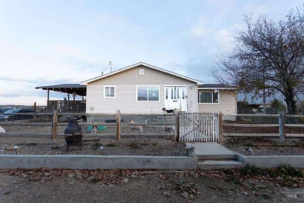 Rare hilltop property in Parma offering peaceful country living with space to spread out. This 2,588 sq ft home features 3 bedrooms, 2 bathrooms, and sits on 2.05 fully fenced acres perfect for horses, livestock, or hobby farming. Elevated setting with sweeping views and incredible sunsets. Includes outbuildings, private well and septic for lower ownership costs, and strong sense of privacy. Property consists of two parcels (1.00 + 1.05 acres), offering future building or investment potential. New roof (under 5 years) and new HVAC system. Conveniently located near the fire station and just 20 minutes to Caldwell and 15 minutes to Ontario country living without the long commute. Property boundaries depicted are approximate and not a survey. Buyer to verify all information (BTVAI)