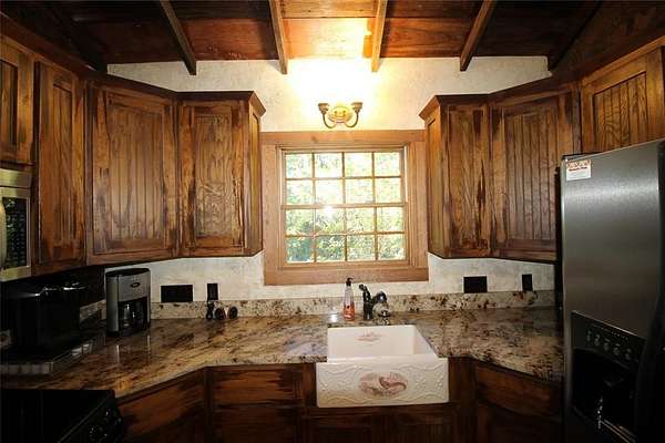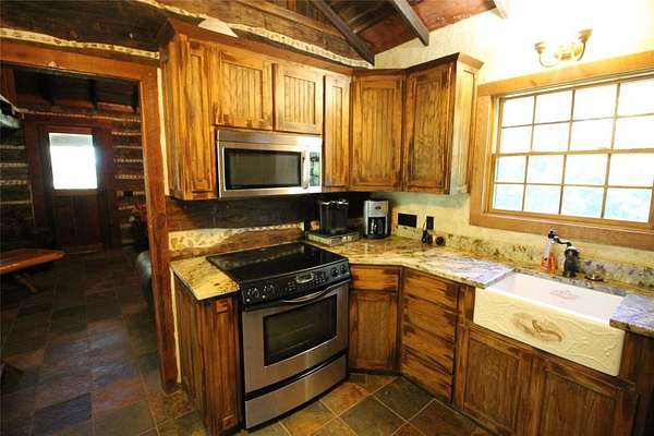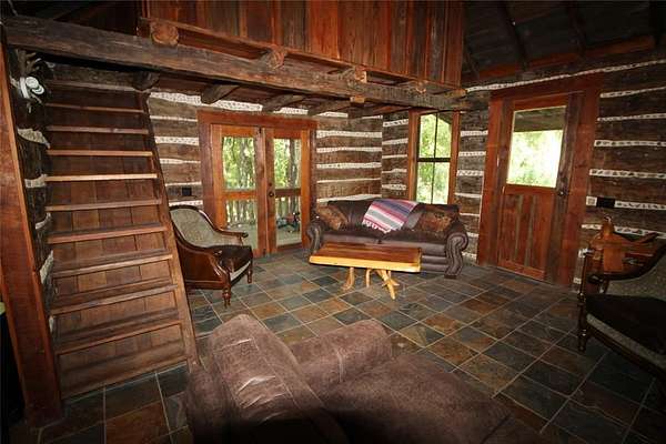 Seize a rare opportunity to own a 34-acre getaway in the heart of Argyle's Horse Country. This extraordinary property blends rustic charm with modern luxury, offering a serene escape just 30 minutes from DFW Airport. A gated entrance ensures privacy and security, enhancing the exclusivity of this secluded retreat. At its heart is a 1900s style log cabin surrounded by large trees, rolling pastures, picturesque views, just steps from the banks of Hickory Creek, teeming with fish and waiting for anglers to reel in a big bass. The 1900s style log cabin is thoughtfully updated to combine timeless character with contemporary comforts. Inside, discover slate floors, granite kitchen countertops, central AC, and an indoor tree fort that kids will love--perfect for a camping-like experience at home. Property offers a barn providing additional storage and an apartment, for guests or caretakers, while RV travelers will appreciate their dedicated RV site. Equestrian or Livestock? Your animals will be spoiled by the expansive, fenced pasture. Thrill-seekers can explore the rolling terrain on 4-wheelers or dirt bikes, carving trails through pastures and woods, or paddle Hickory Creek by kayak or canoe yards from your doorstep. Whether you dream of a private family retreat, a working ranch, or a weekend getaway, this versatile canvas offers endless possibilities. Bring your dreams and plan your future on this rare gem in Argyle Horse Country! Conveniently located just 18 minutes from the nearest Super Walmart, Whole Foods and the Shops of Highland Village. 30 minutes from DFW Airport and minutes from shopping dining and major roadways. NOTE: This property does not offer a practical building site. The majority of the land sits within a floodplain, and any future development would face significant challenges related to elevation, engineering, and permitting. Constructing habitable or insurable structures here would be complex and costly, making it more of a recreational "toy".