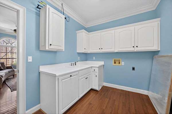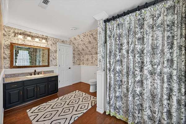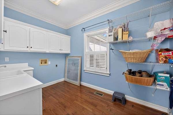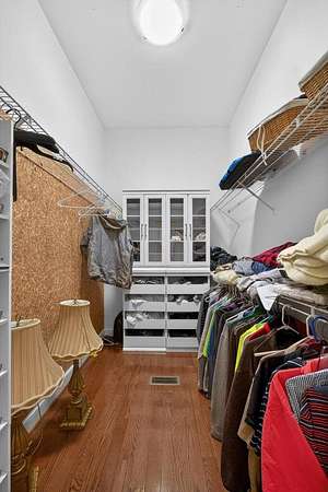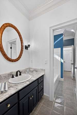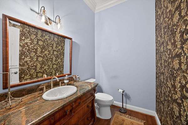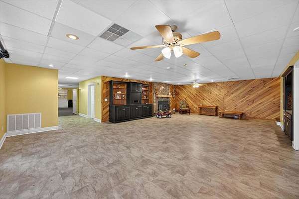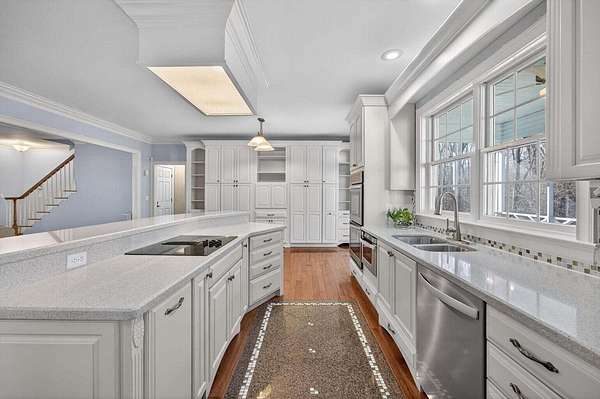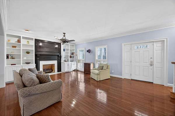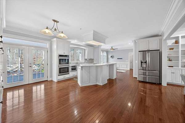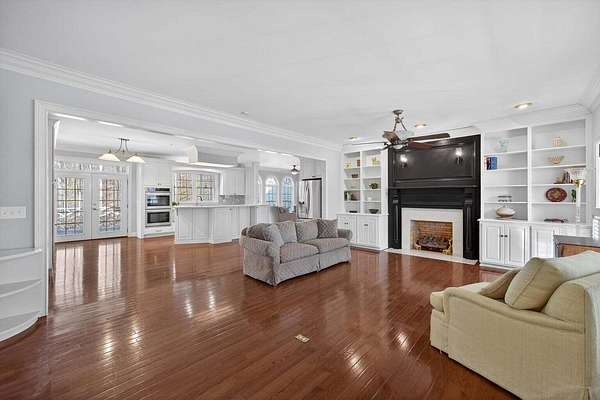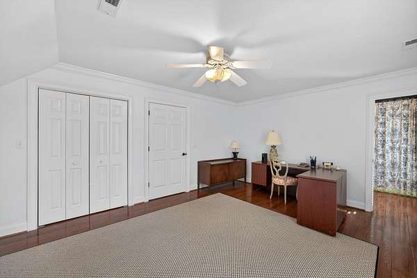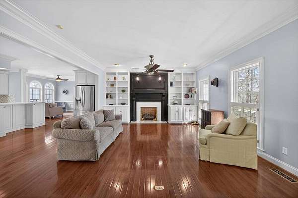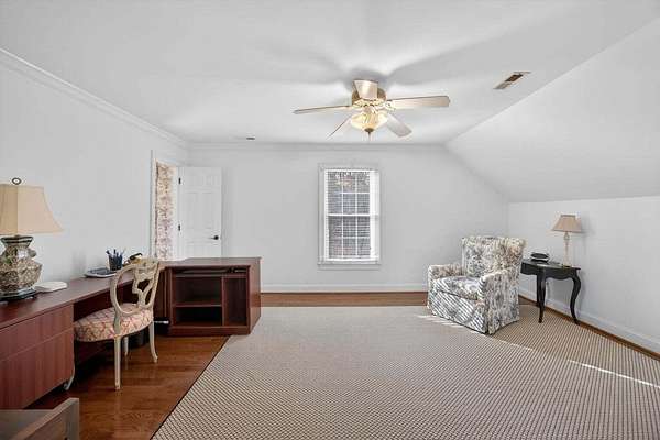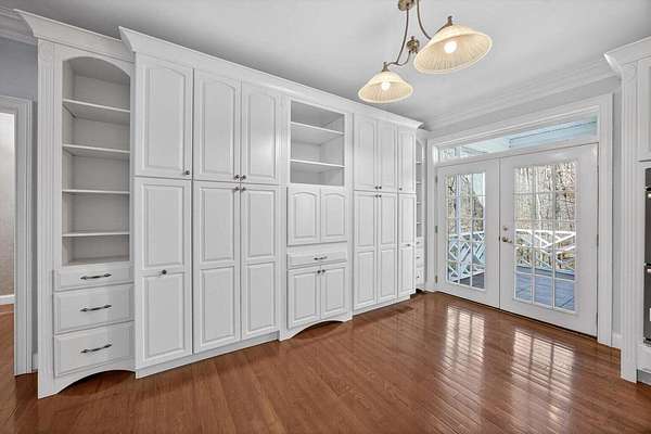 - Bookcases, Built-In Features, Cathedral Ceiling(s), Ceiling Fan(s), Crown Molding, Double Closets, Double Vanity, Granite Counters, High Ceilings, Kitchen Island, Pantry, Primary Downstairs, Stone Counters, Walk-In Closet(s), Wired For Data