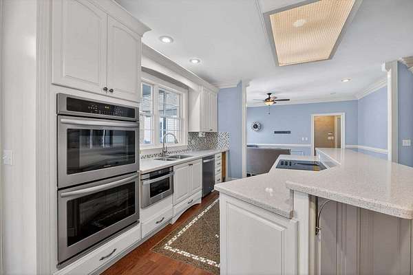 - Double Oven, Electric Cooktop, Electric Oven, Electric Water Heater, Microwave, Plumbed For Ice Maker, Refrigerator